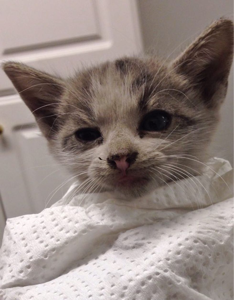 The kitty received a clean bill of health at the vet. "He's received his first set of vaccinations, so he's now joined the ranks of our unexpected kitty family, whether he likes it or not! (I think he likes it, though.)" she wrote.