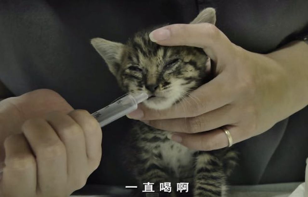 When Lin saw the kitten getting food and liquid, he felt a sigh of relief and was beaming with joy, knowing that the kitten was going to be OK.