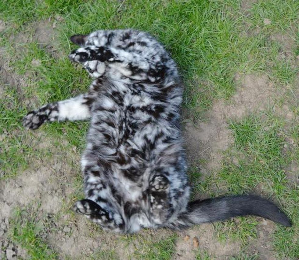 Scrappy developed a patch of white fur when he was 7 years old. Now he looks absolutely stunning with his camouflage markings!