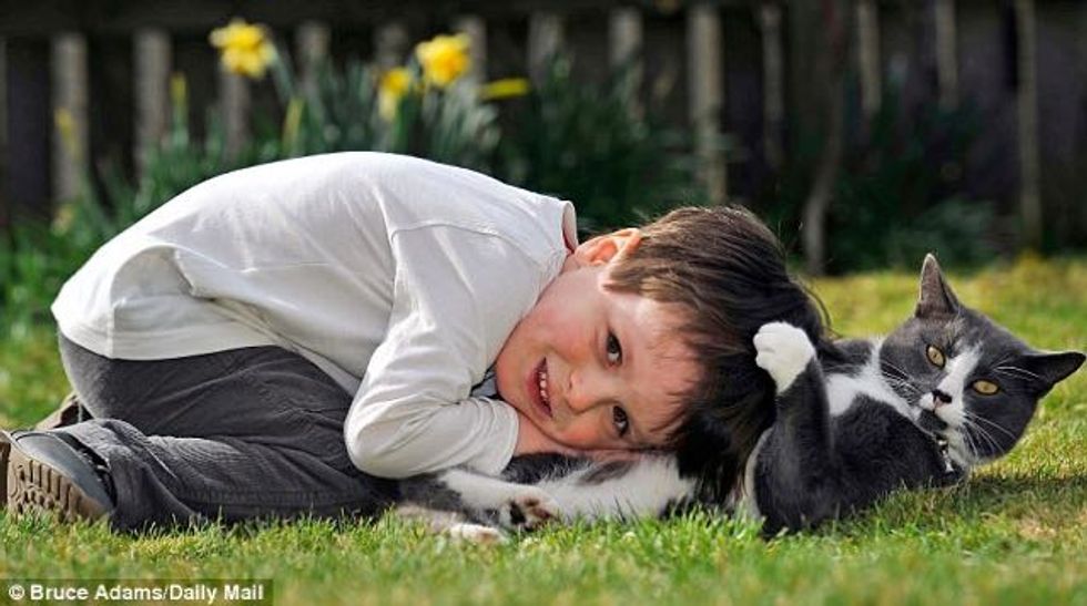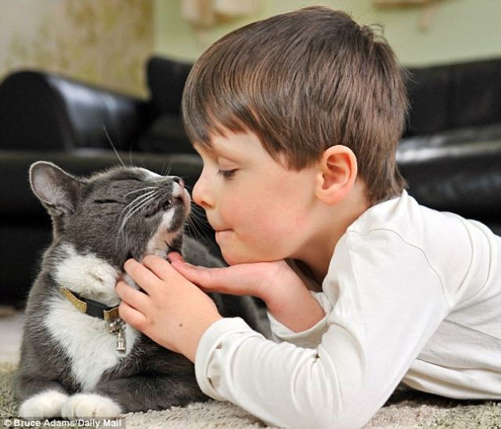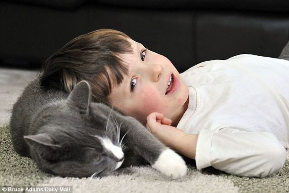 When Fraser was a two-year-old, he met Billy at the cat protection shelter. Billy purred and laid his paws across Fraser, and they have been inseparable ever since. Slowly but surely Billy has transformed Fraser's life.