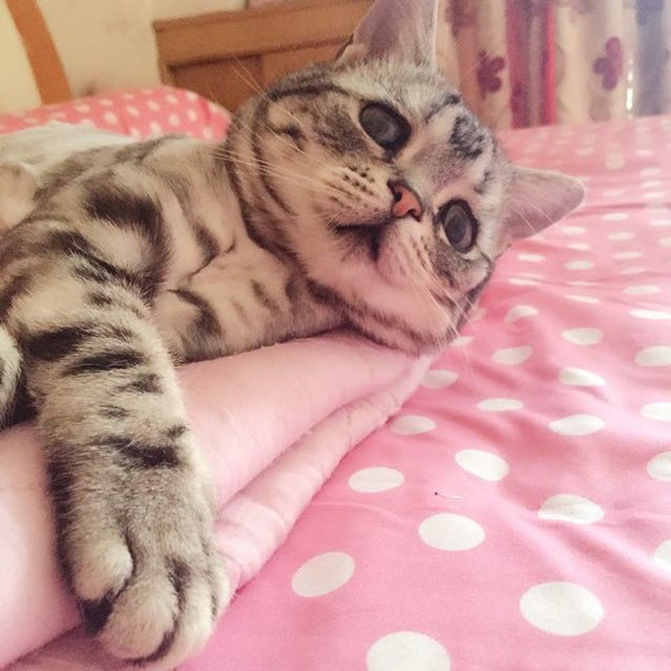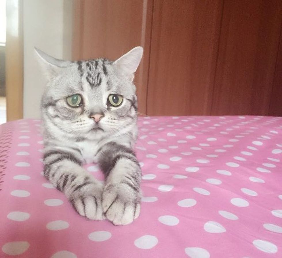 With a look like that, he can get away with anything! Luhu's human, Maggie, said via Instagram that he may look sad, but he's quite happy inside and can be a bit naughty sometimes. Luhu lives with two other older cats, Barher and Bardie, and he is the only kitty that has those sad eyes.
