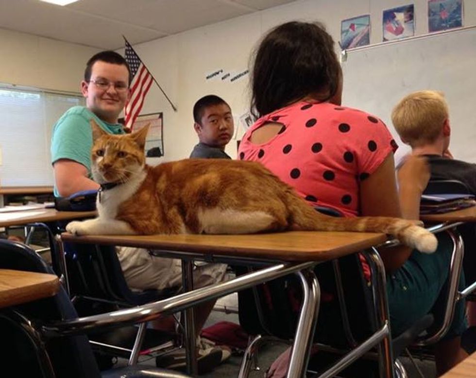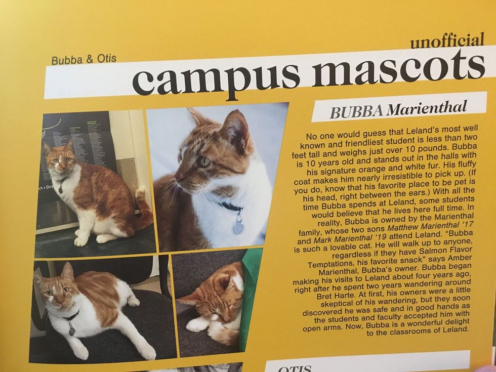 "One teacher made the mistake of buying treats for him," Marienthal said. "Bubba would meow for treats," waiting by his classroom door during class.