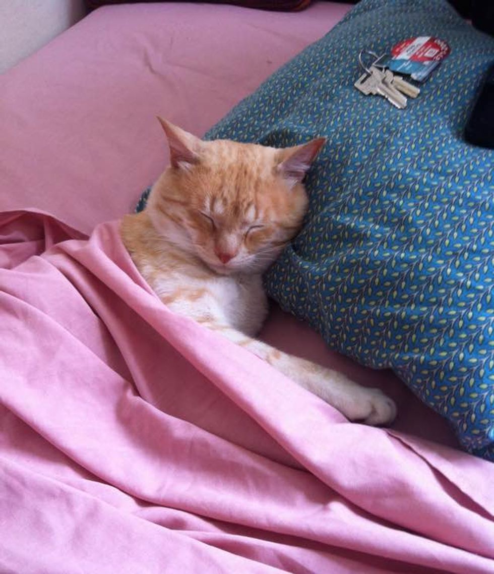 They named him Captain Kirk. Once he discovered his human's bed, he thought it was the most comfortable thing in the world.