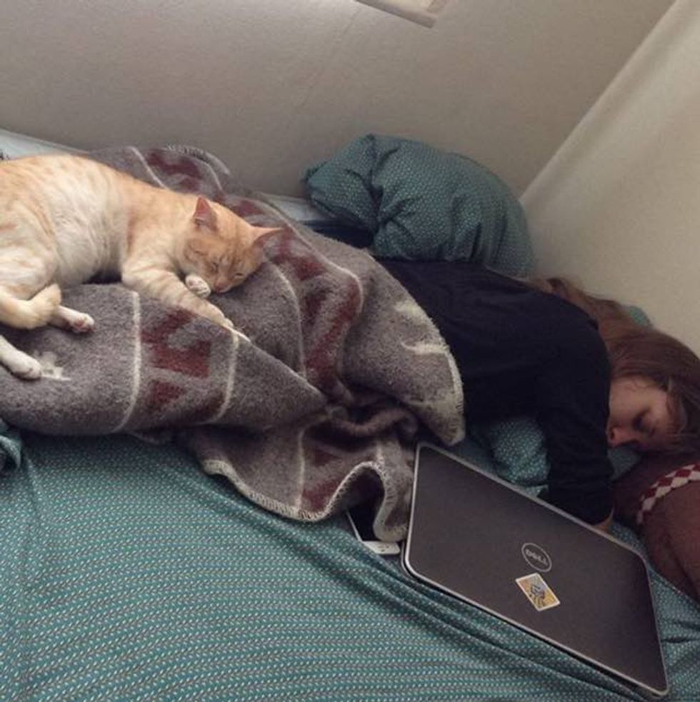 He is always with his family, snuggling or keeping them company. There's nowhere else he'd rather be. "He is basically the most spoiled cat in the world now."
