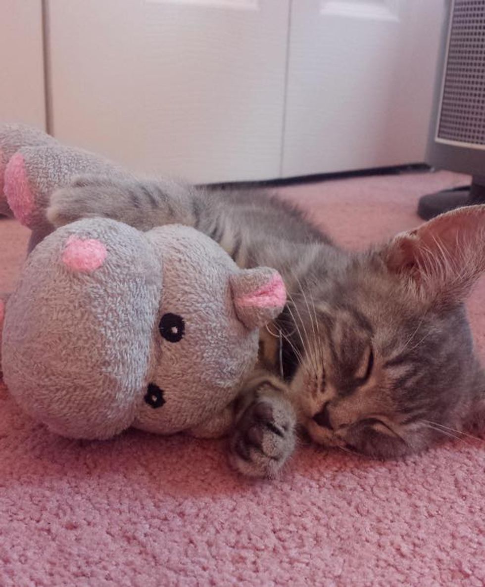 They went to adopt a cat and came out with a kitten and his cuddly hippo. "I rescued Stanley and his hippo today. The shelter said they were a package deal," reddit user nickynips said.