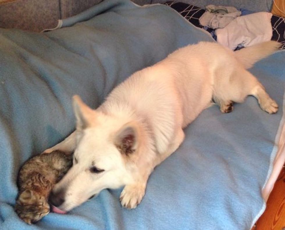 Soon this happened... "He was absolutely thrilled to be able to sniff her and get close to her," Basia added.