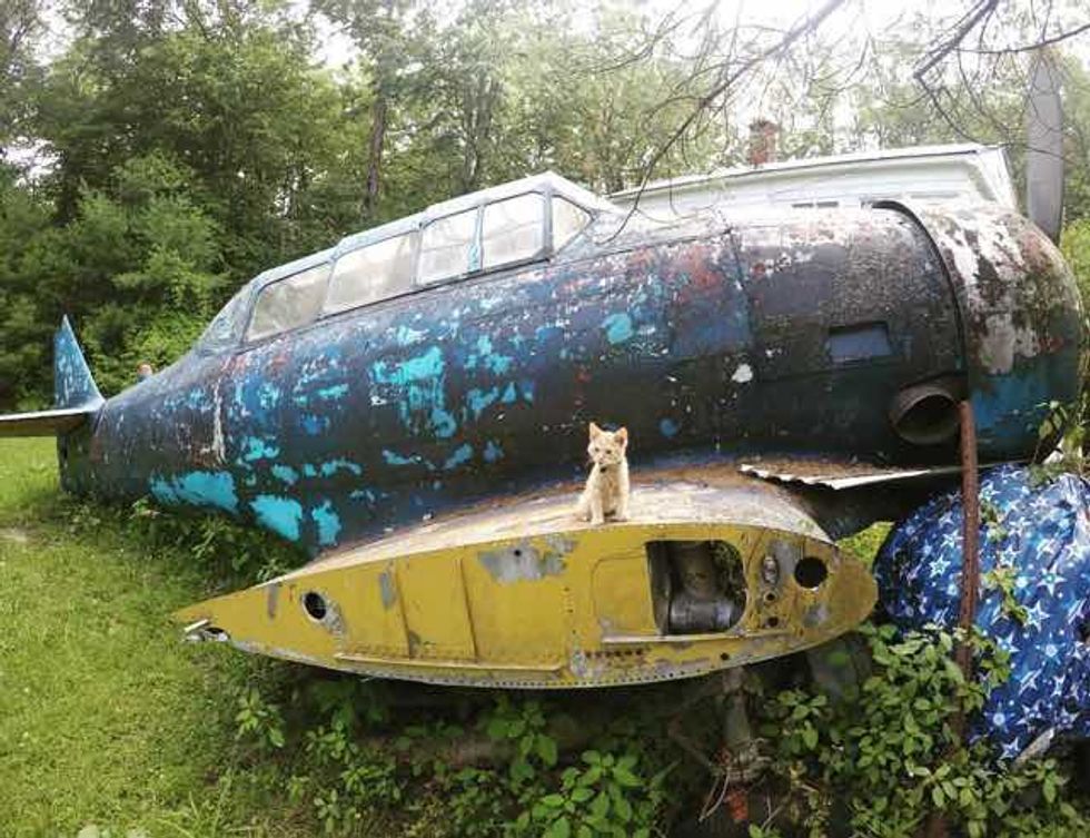 Party Cat got to explore an abandoned airplane.
