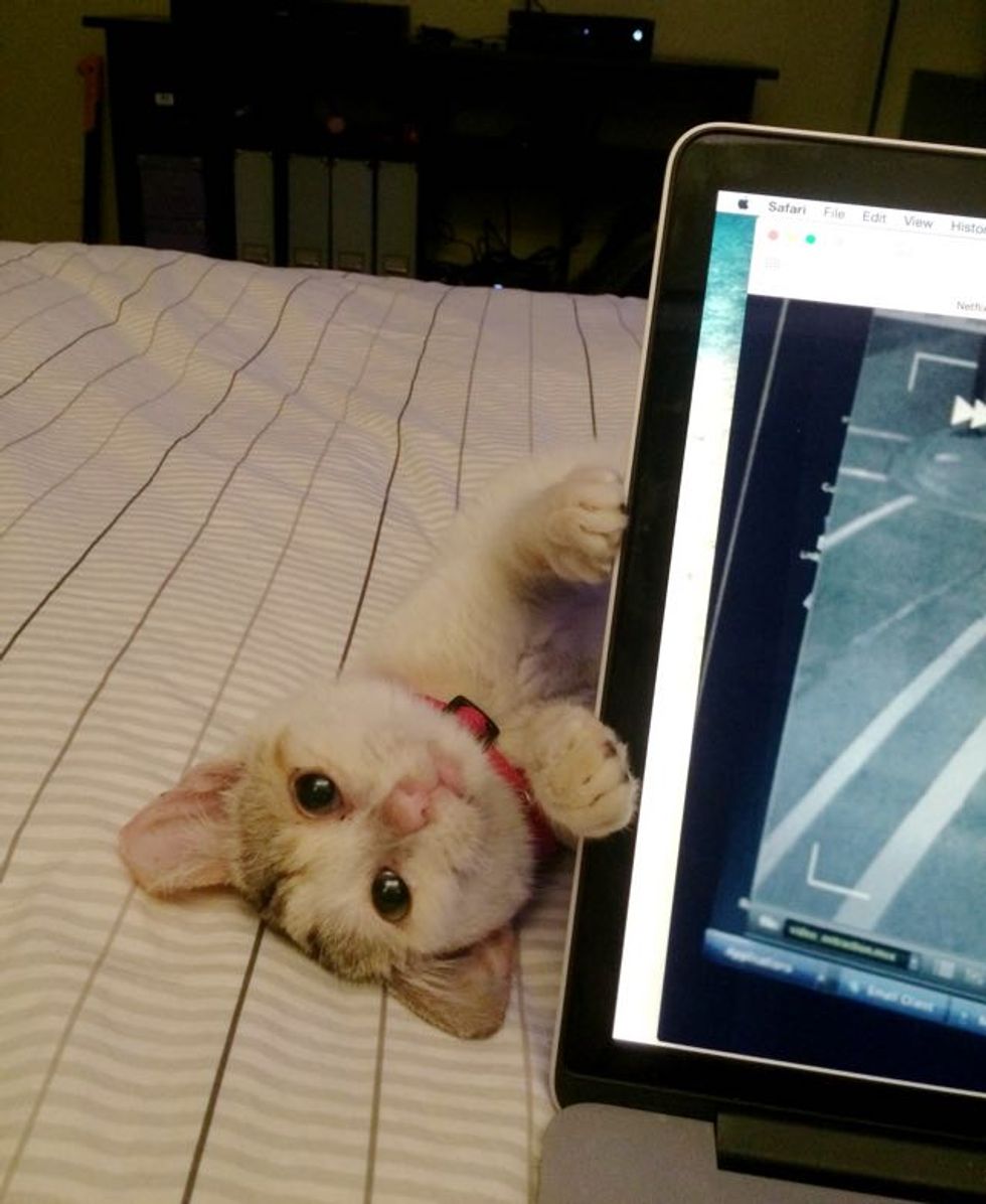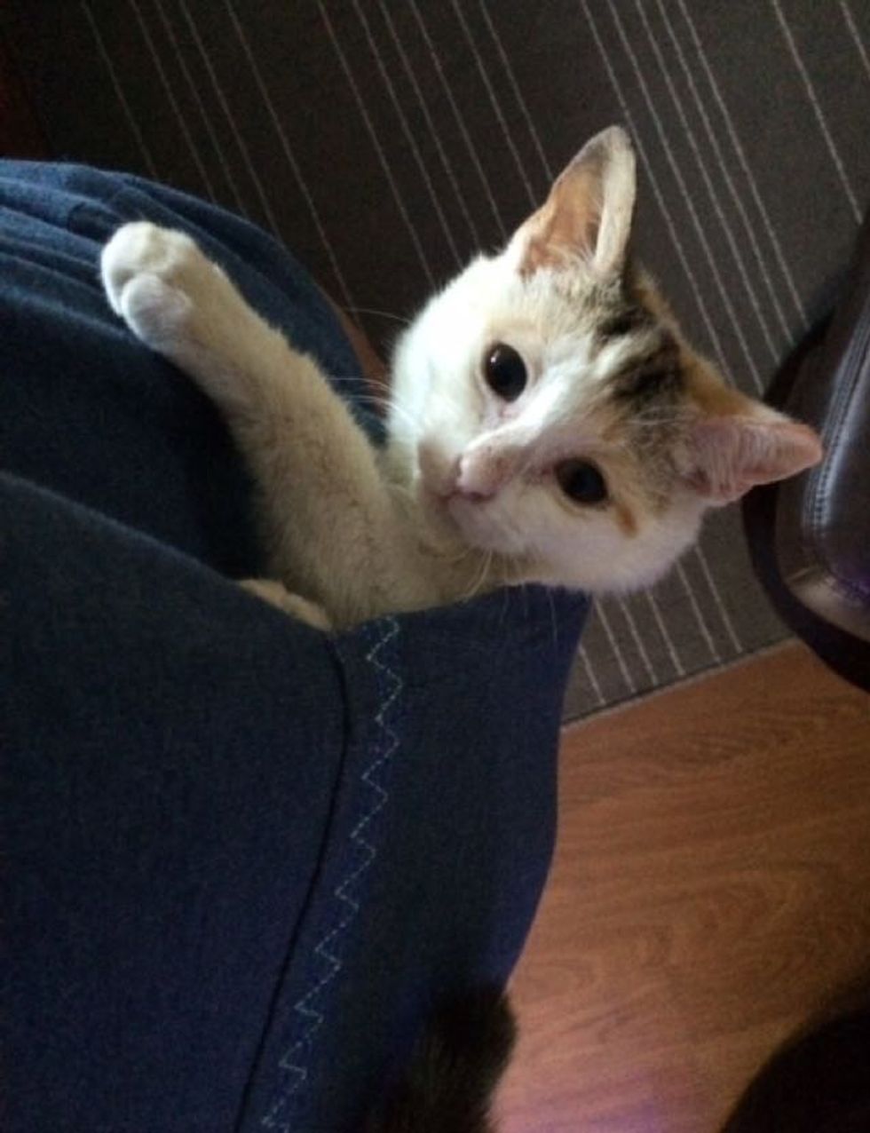 "She can't stop purring and wants to be loved. Either in your lap, while you sleep, or rubbing your leg. She's too cute!"