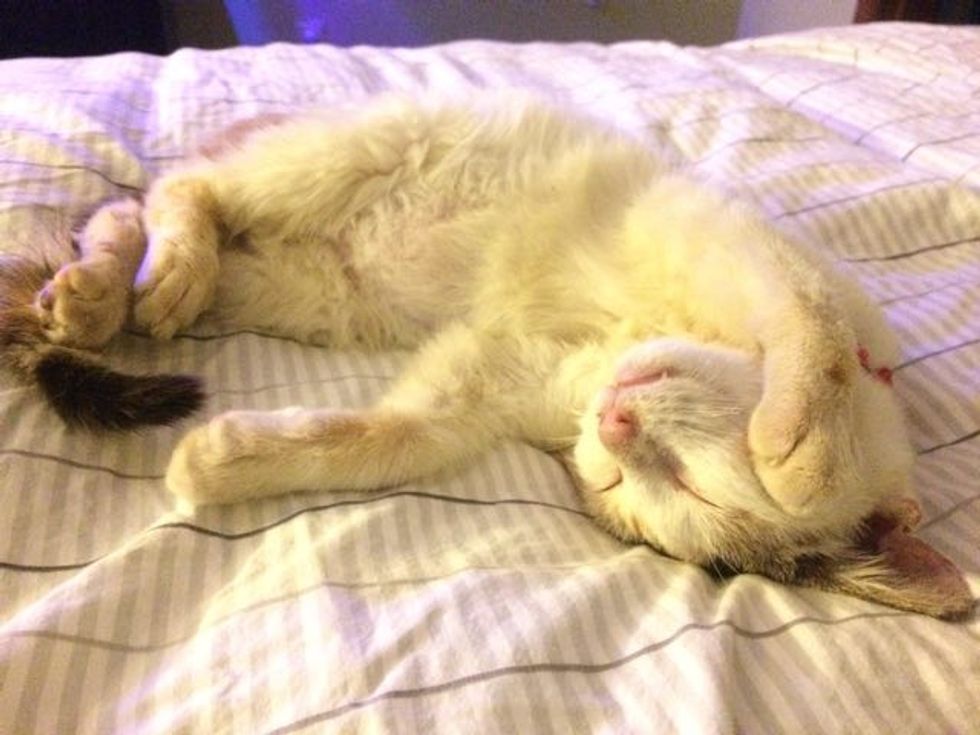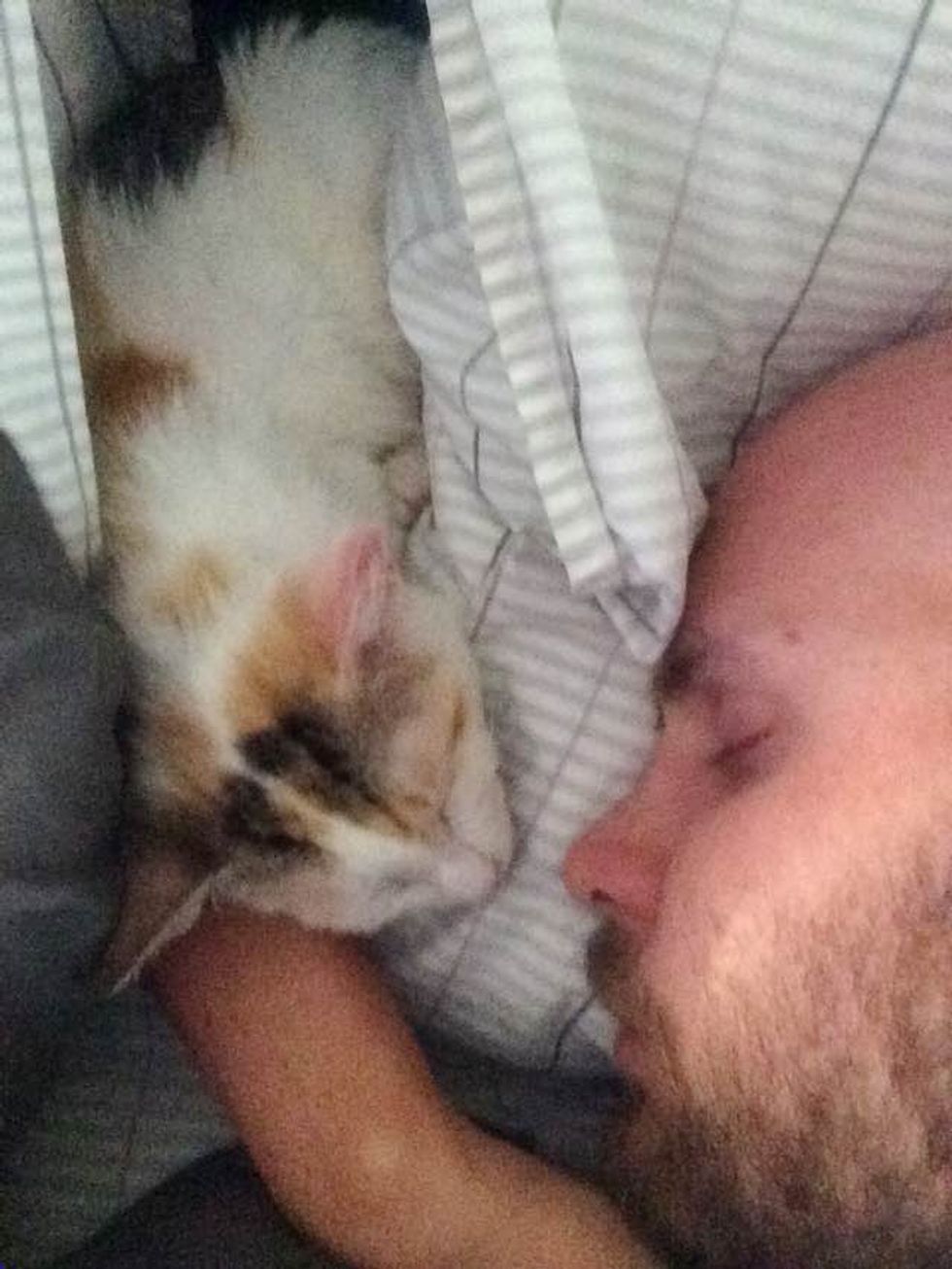This little kitty came from a junk yard and was barely hanging on. The moment she started cuddling with her rescuers, she couldn't stop. This is what a second chance can do.