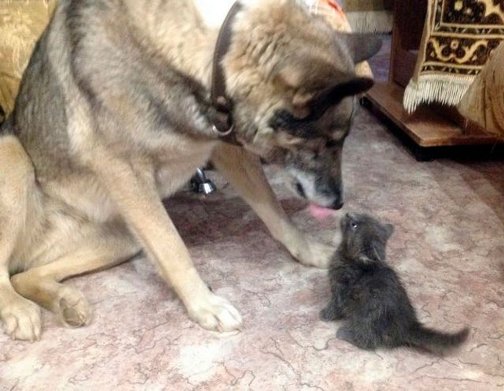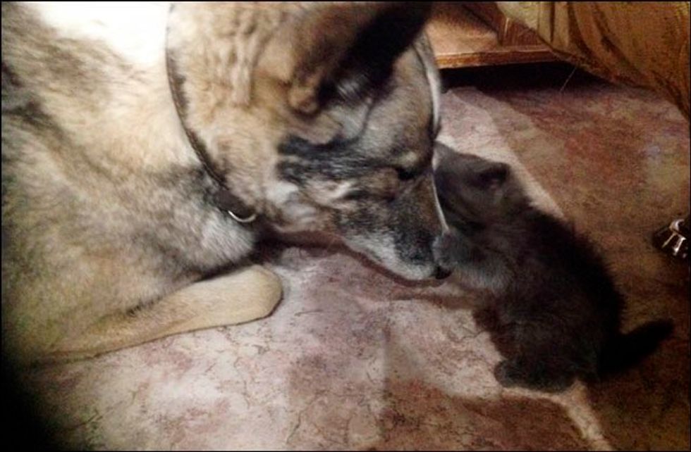 The kittens were covered in thick black gunk but were very lucky to be saved. They are now recovering and are doing well. They have even befriended Anatoly's dog who helps take care of the fur babies.