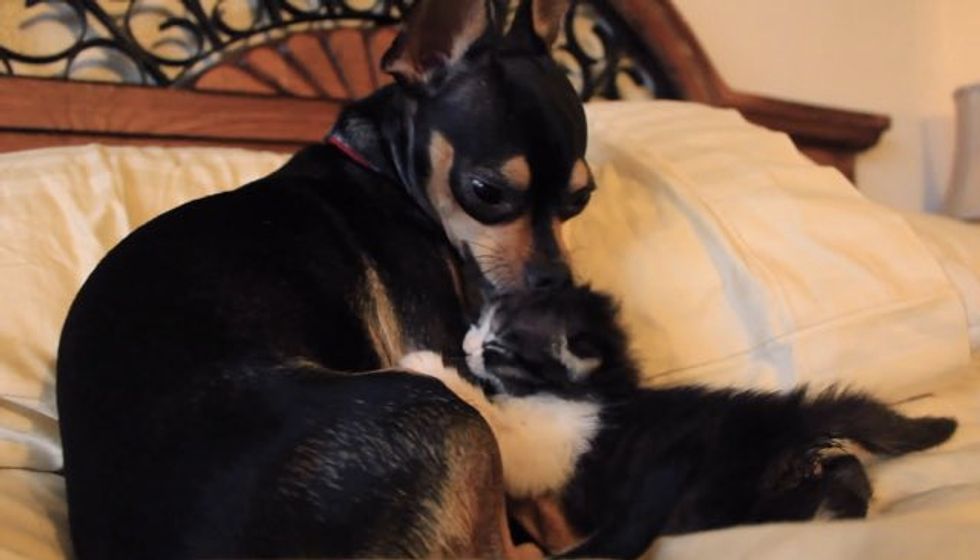 Bo the tiny fluff ball was found as an orphan, but he's no longer alone. They introduced him to Charlie the Chihuahua rescue and the two instantly hit it off. Now Bo has a rescue Poodle as his mom and a Chihuahua as his brother.