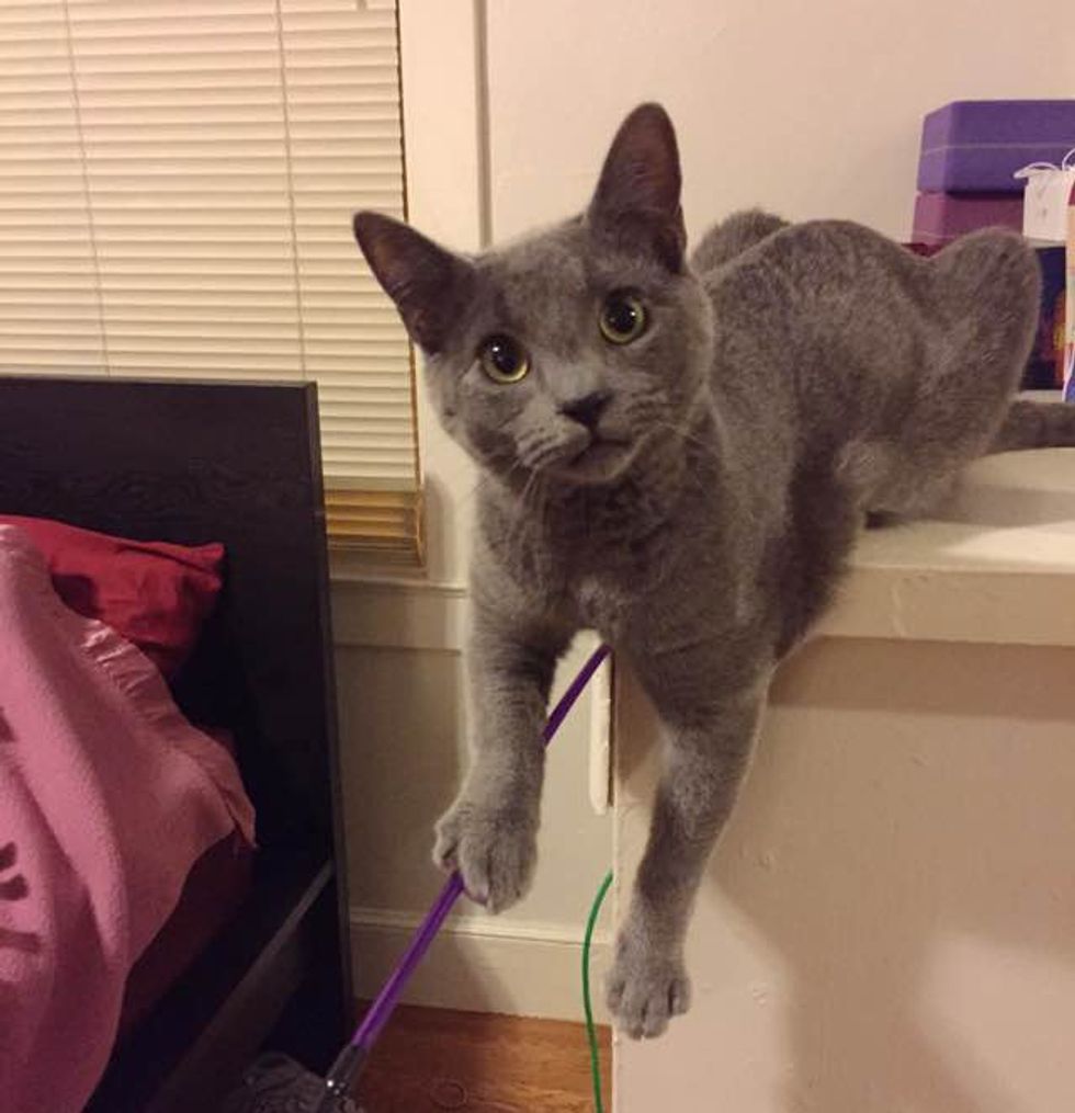 Another flea bath! "Slowly figuring out how to groom himself...He still isn't very good at it since he never had a mom to teach him."