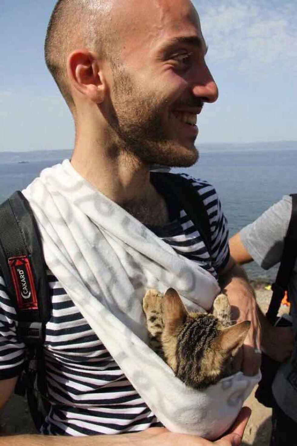 "This is love, this Syrian refugee couldn't bear to leave his kitten behind, so it came with him," said Catterati via instagram.