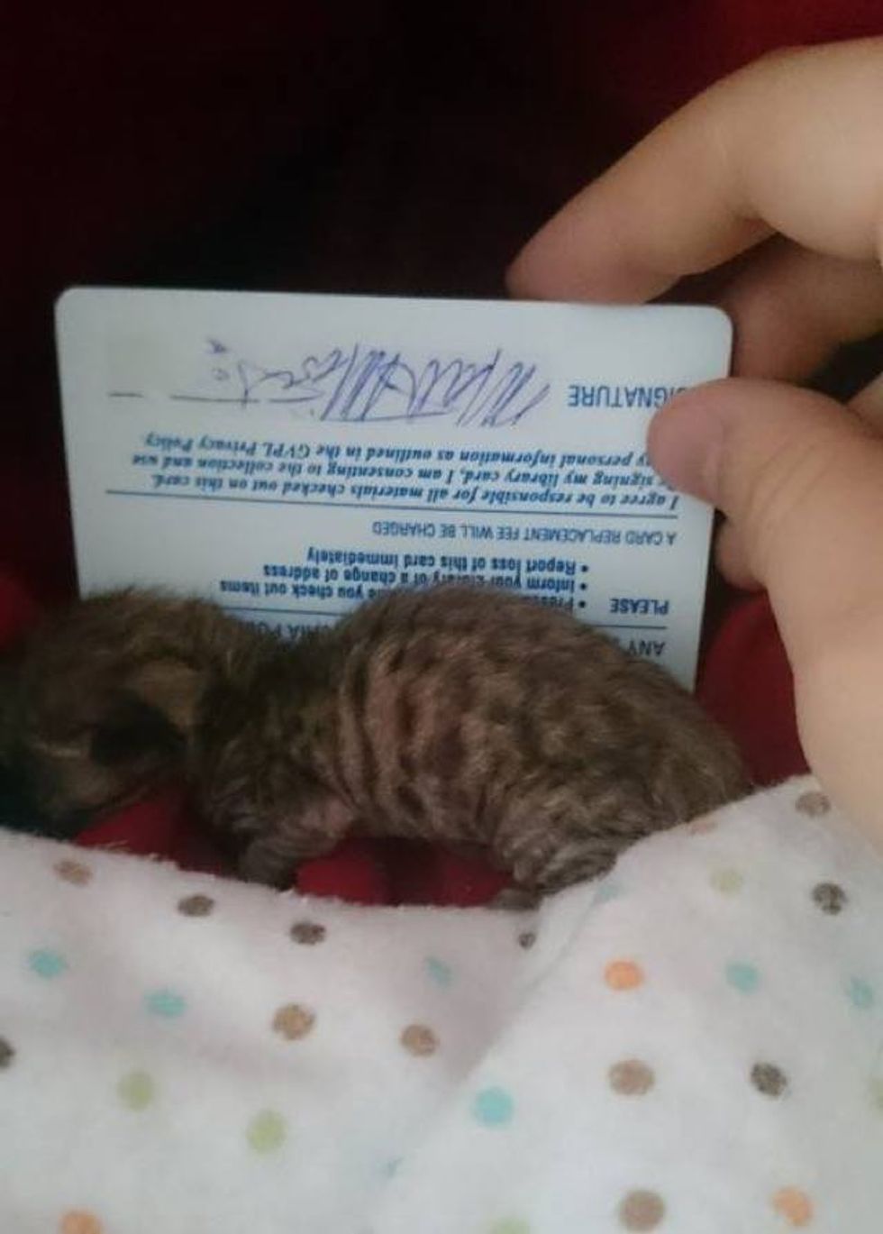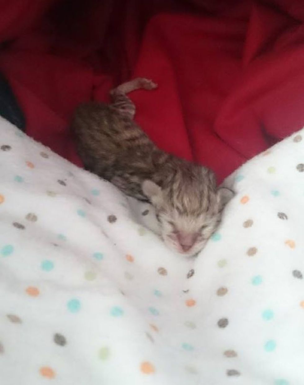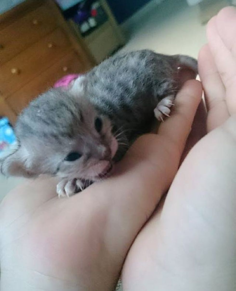They took a picture of the kitten and showed it to the vet. "They told me not to get my hopes up. None of the vets had ever seen a kitten so small that was alive," she adds.