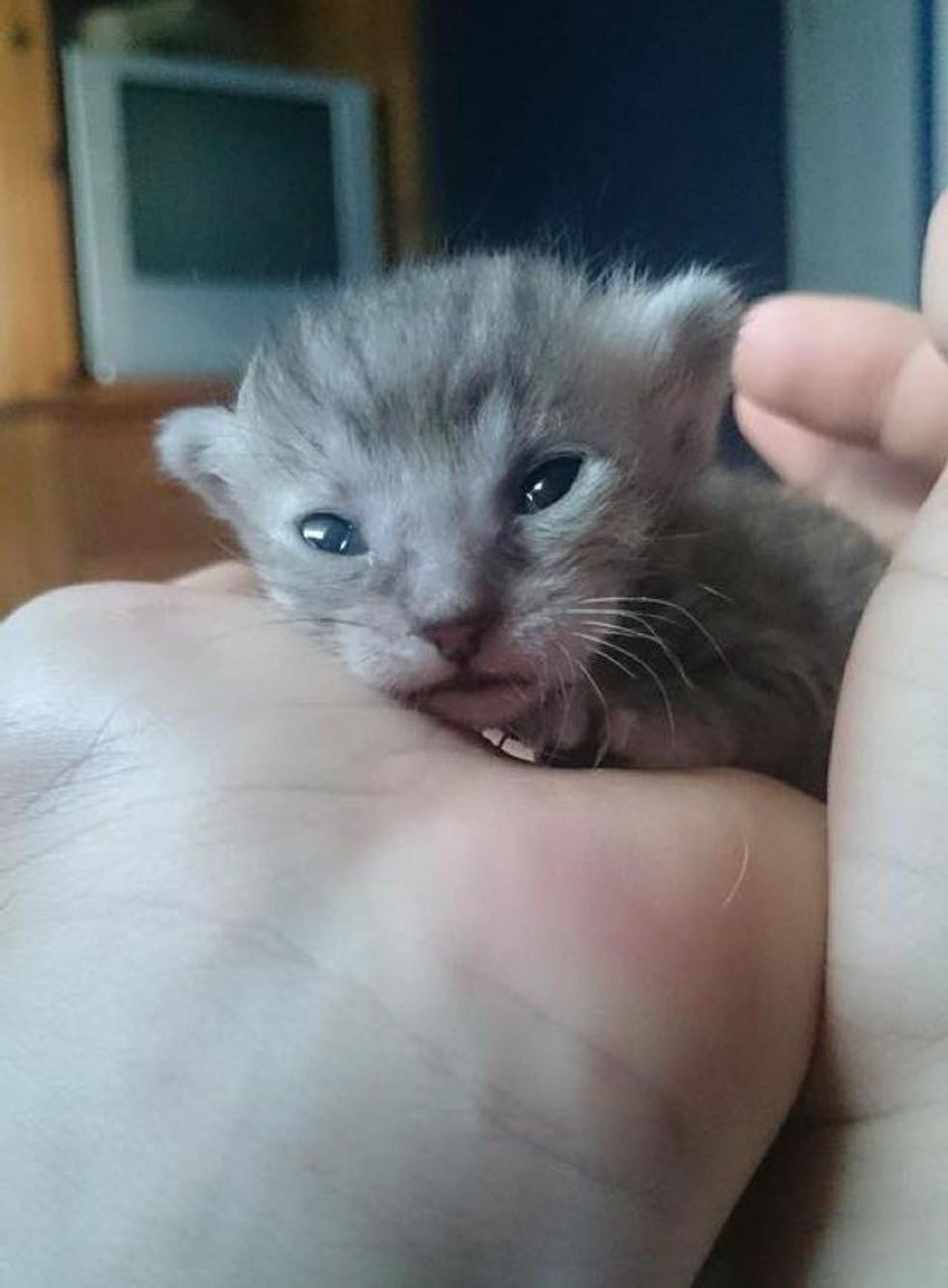 Despite what the vets said, they decided to try to save the kitten and christened the little fur ball Titan (at the time they thought the kitten was a boy).
