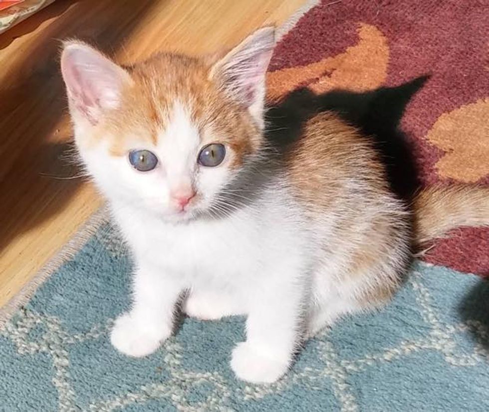 The baby is now in a foster home with other kittens of similar age and doing very well. We are so happy to have her. We have more questions than answers, but are forever thankful for the bravery of the child who knew the kitten deserved better and the kindness of the woman who saved the kitten.