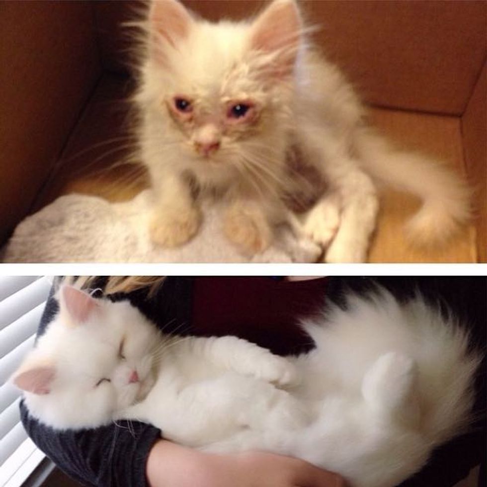 Photo from @sir_silas_kitty"Silas before and after! He was left on the side of the road, and near death. We gave him a forever home," Sila's family in Florida wrote on Instagram.