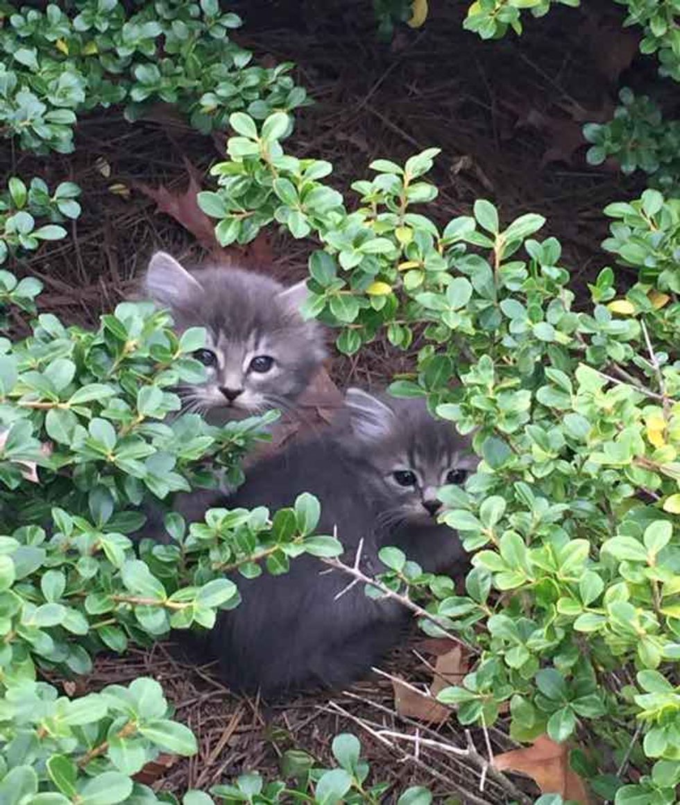 They spent hours upon hours to rescue these two little stray kittens hiding in the bushes so they could be reunited with their furry family.