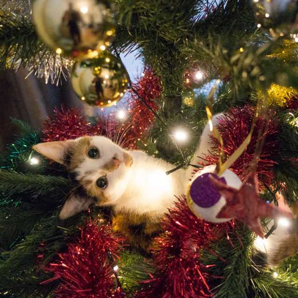It's the time of the year when you put up your Christmas tree and hang up all your festive ornaments. Cats love it because it means they can play with all the new 'toys' and be creative with them.