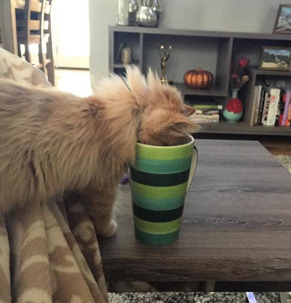 Rey discovers water in her human's cup for the first time!