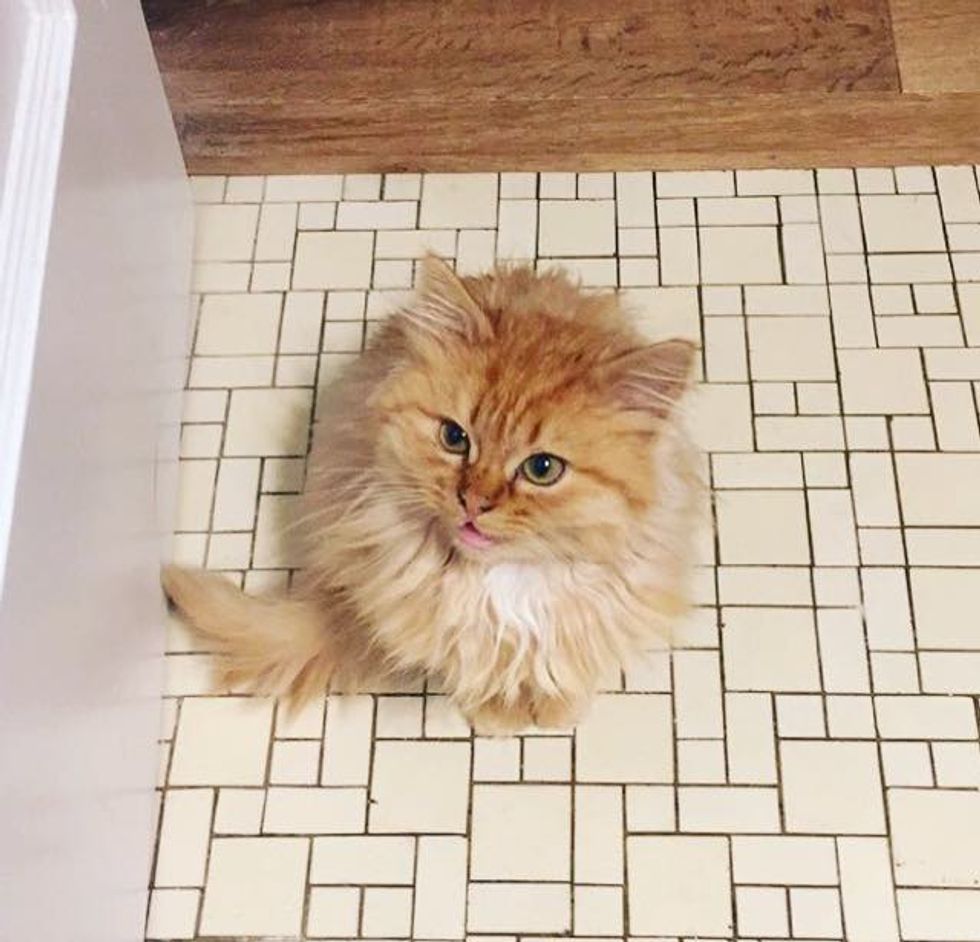 Bathroom time is no longer a private matter. This little fluff ball refuses to leave her humans alone.
