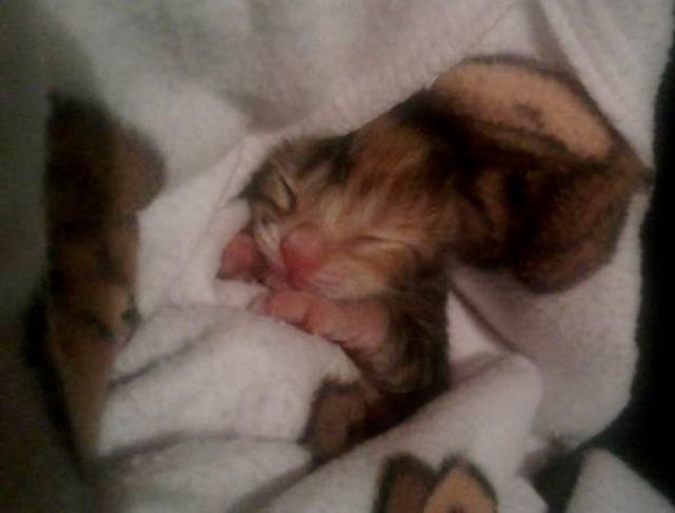 This tiny fur baby was found on the side of the road with the umbilical cord still attached. When they heard her faint cries, they knew there was hope.
