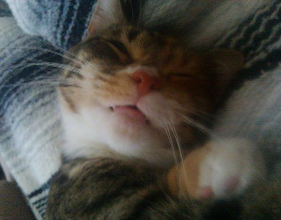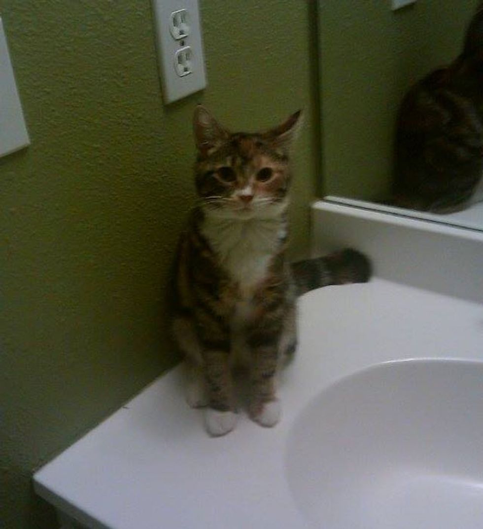 The next day, we took her to the vet and found out she was only a few hours old when she was found and the only thing wrong with her was one paw was slightly larger than the others and she's missing a toe on that paw. With that being said, the vet believes the mother cat abandoned her because of her having this and plus being so small.