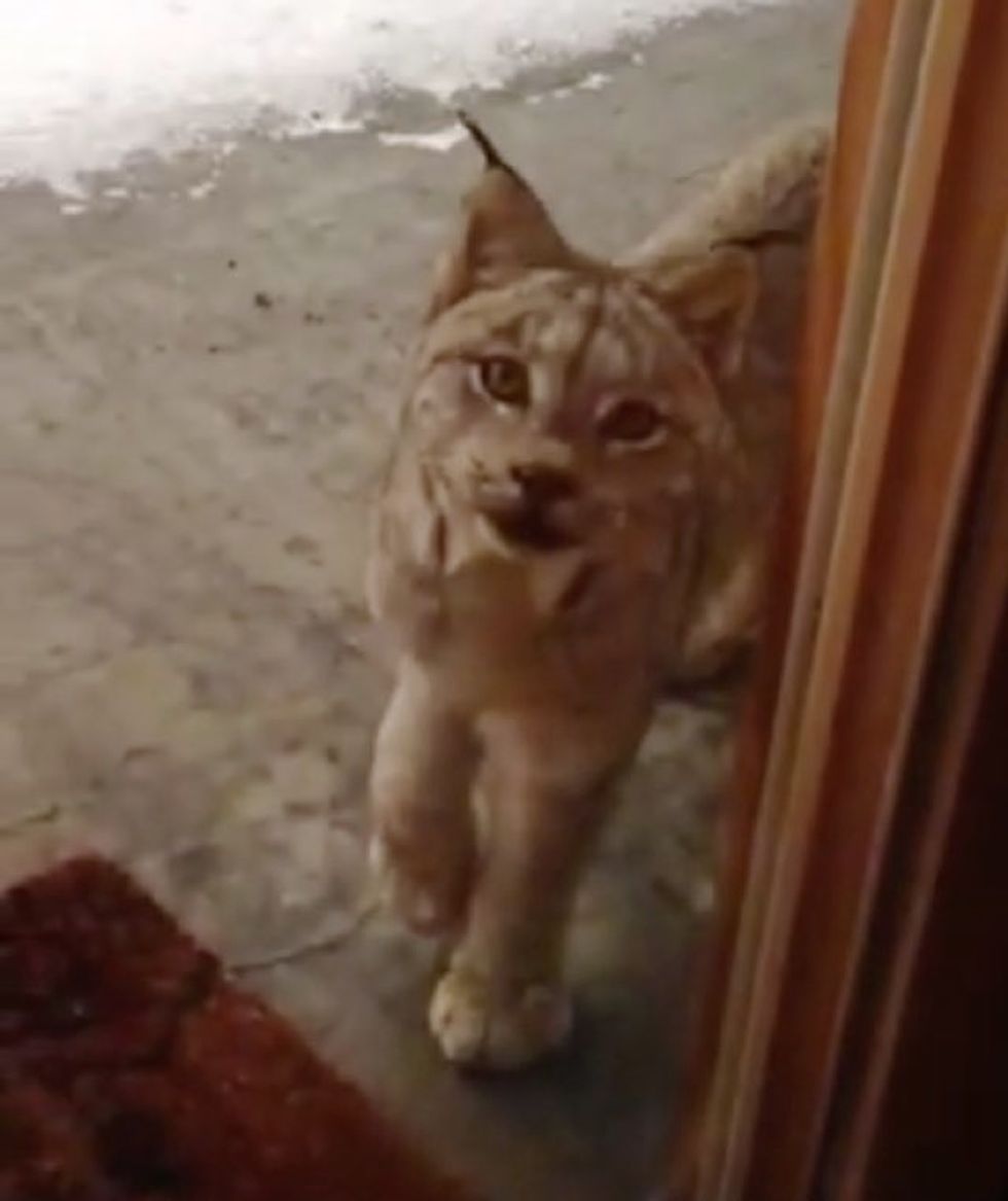 Her cat and Schnauzer were inside the house at the time while the curious Lynx visited her home.