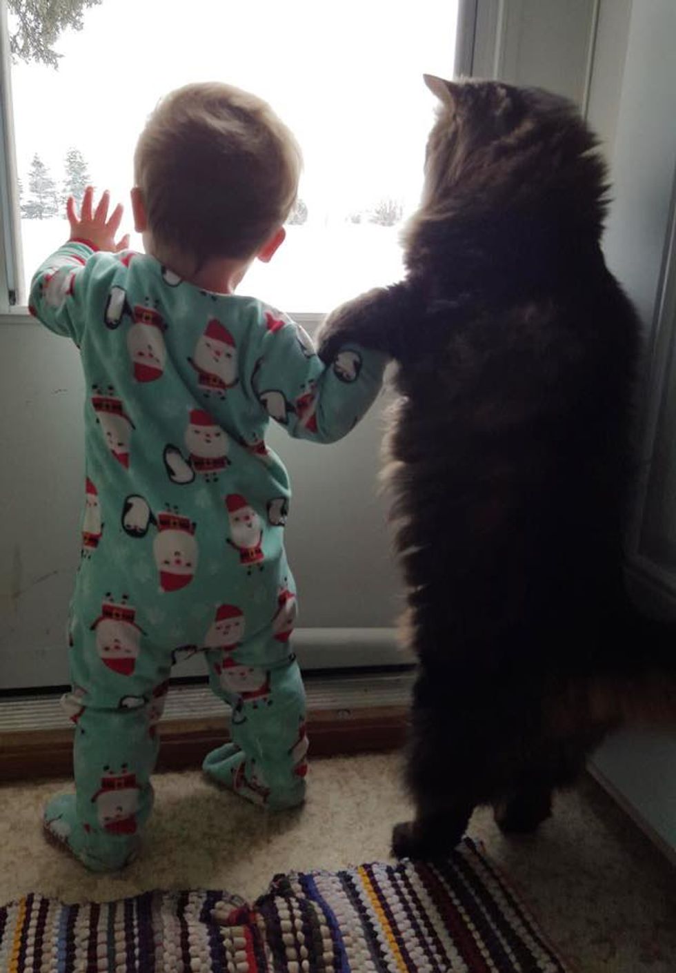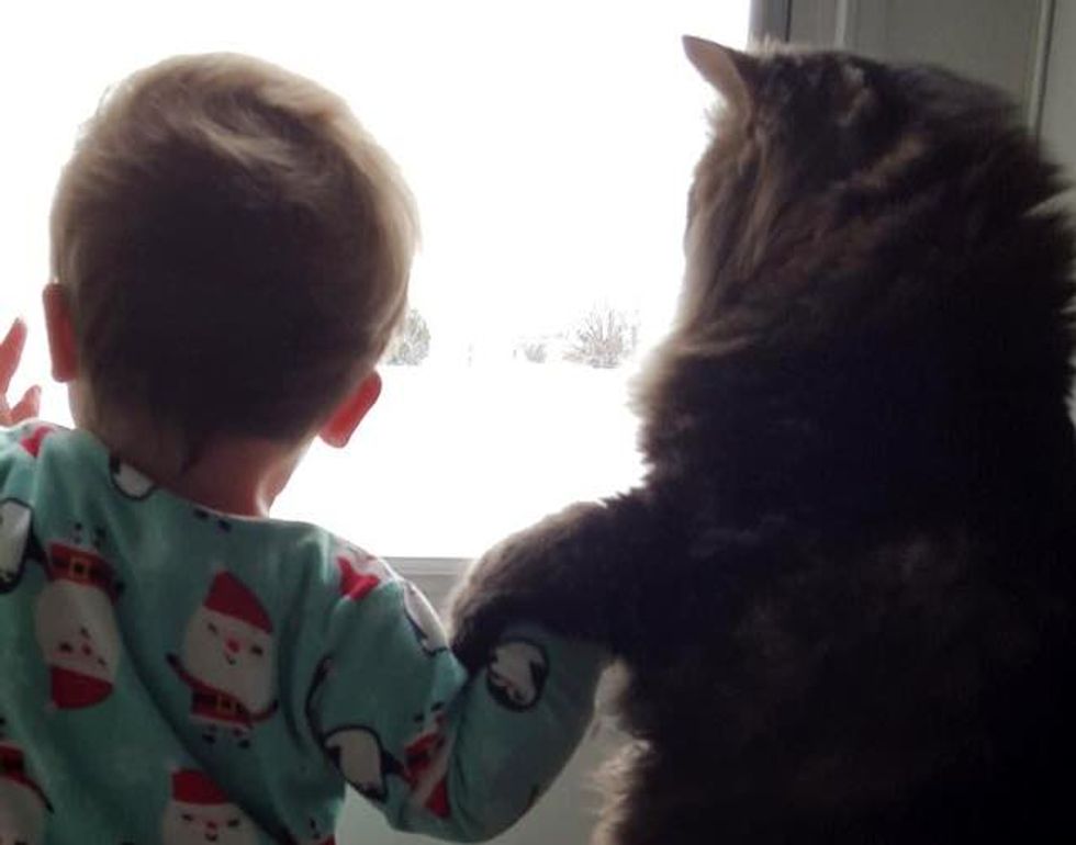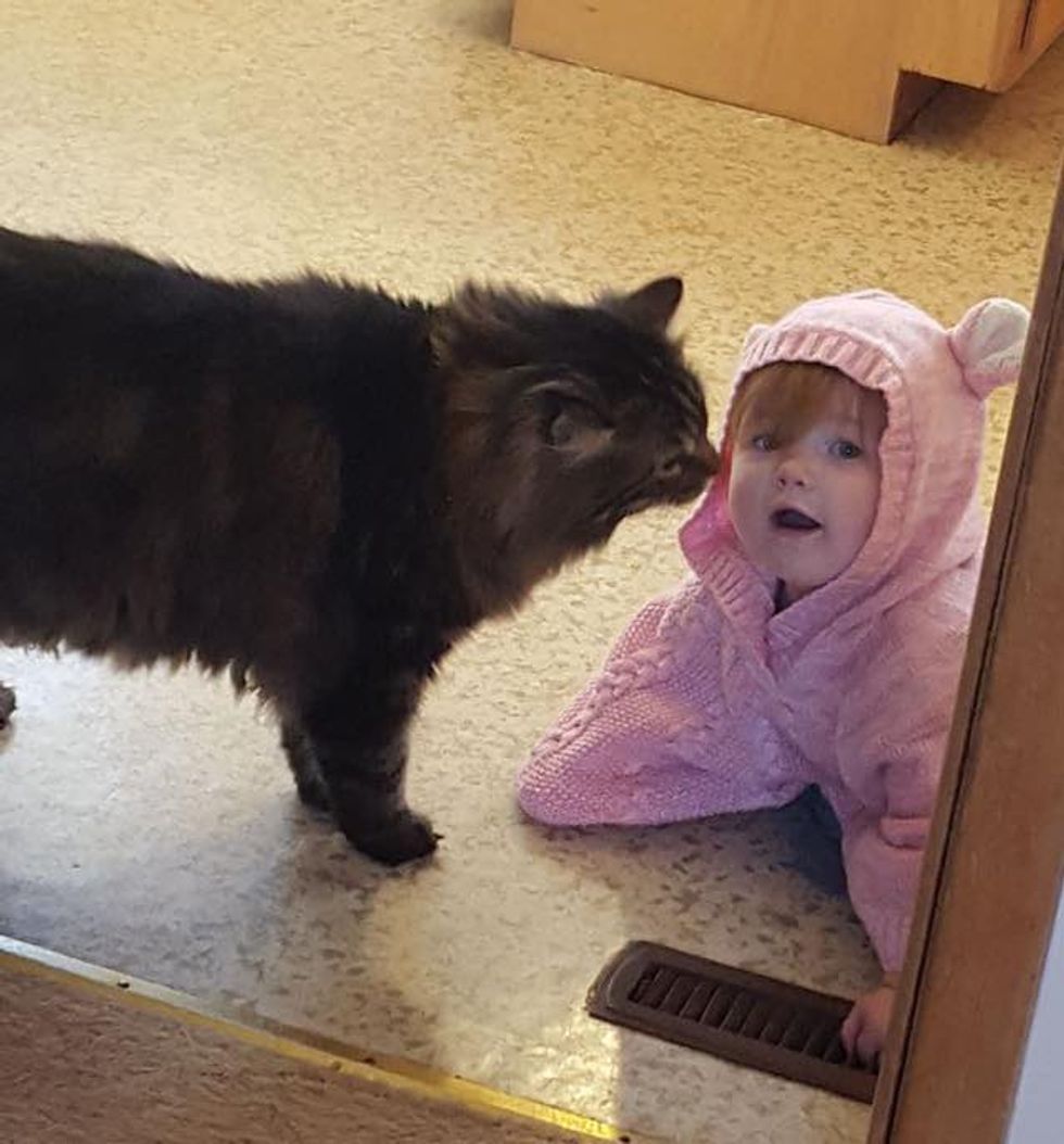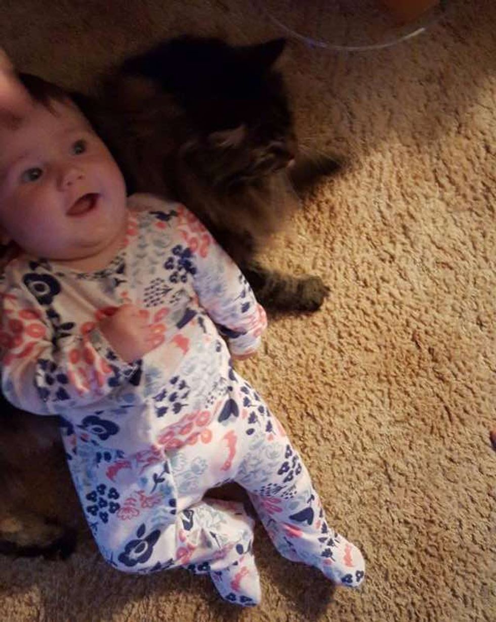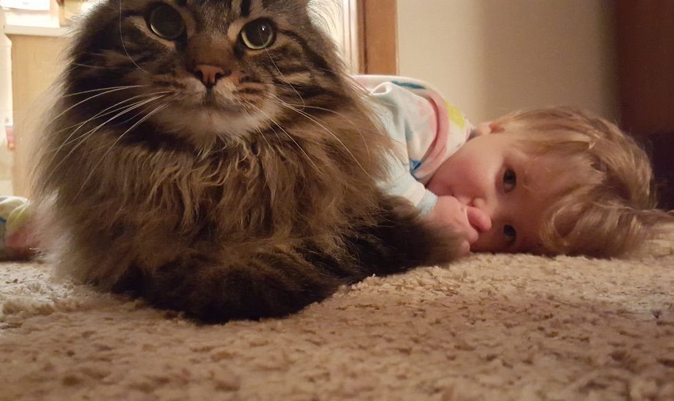 Eddie, a 3-year-old Maine Coon cat, is a guardian to his 9-month-old little baby sister, Josilyn. They share a very special bond.
