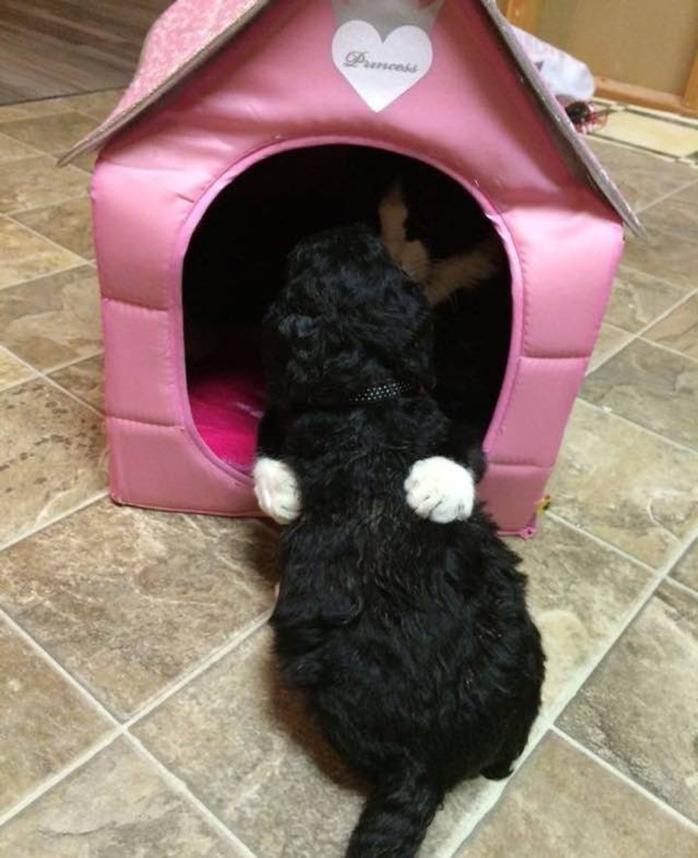 "To this day kitten doesn't know he is a cat!" Myers said.