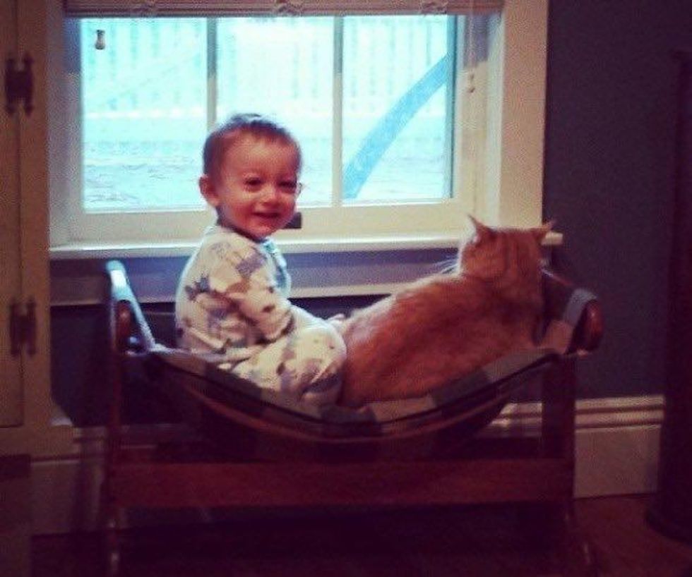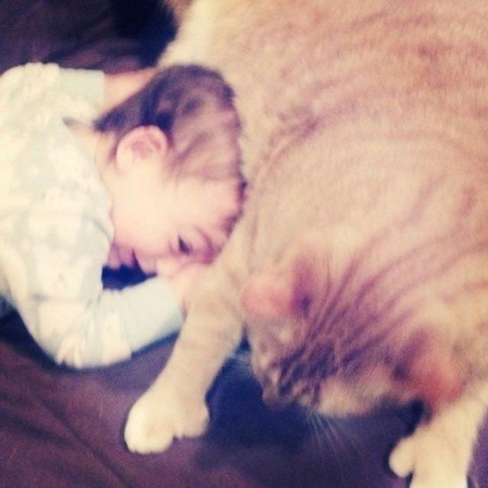 "At 9 months Abel's very first word was 'Yarry'. When Abel cries Larry runs over to comfort him.