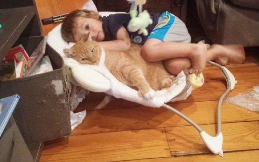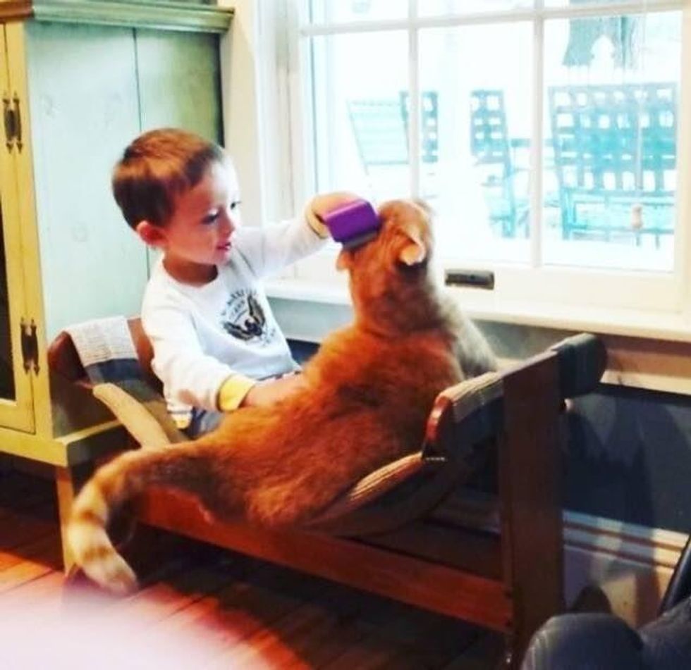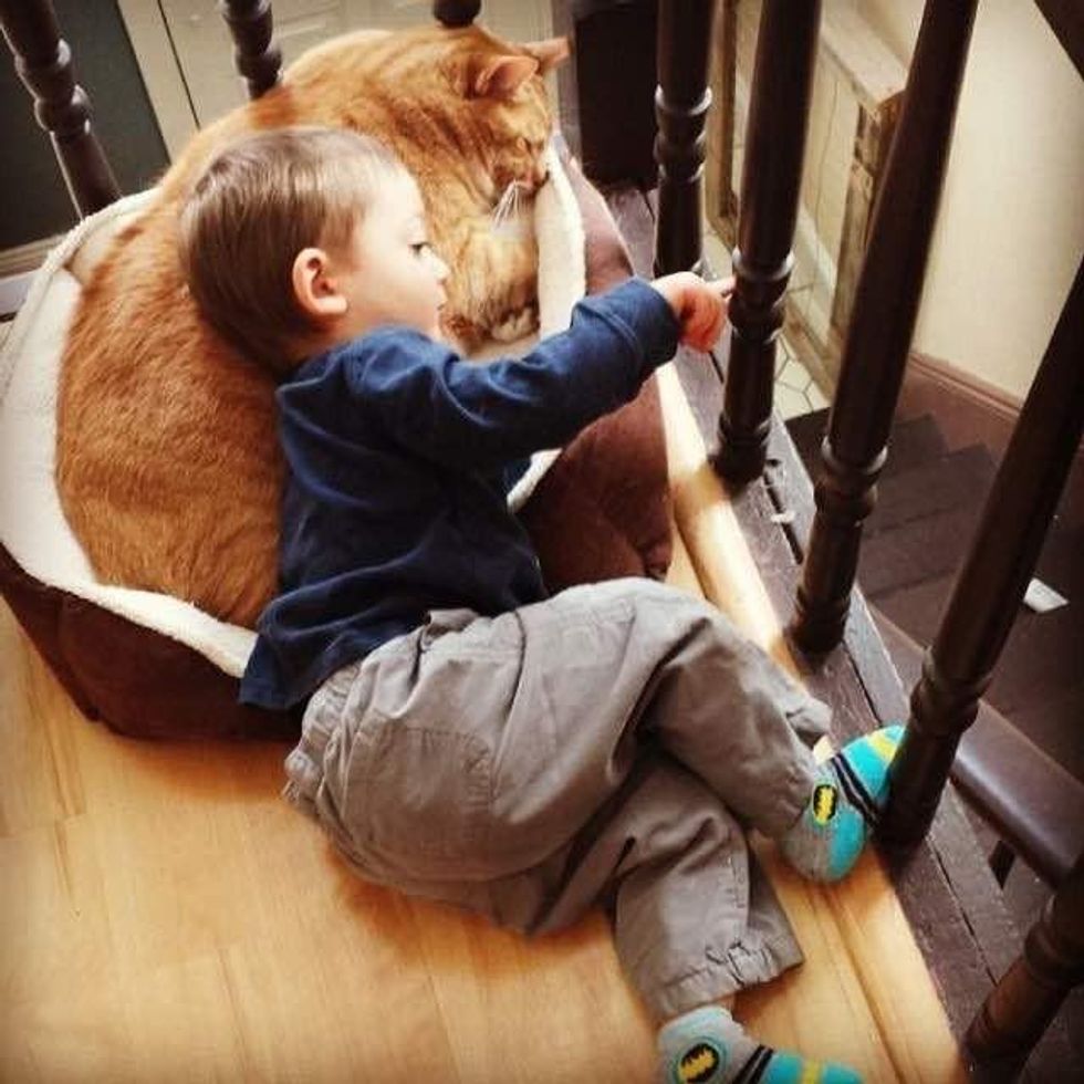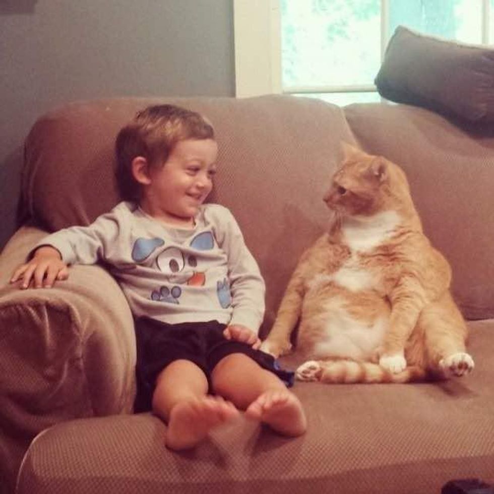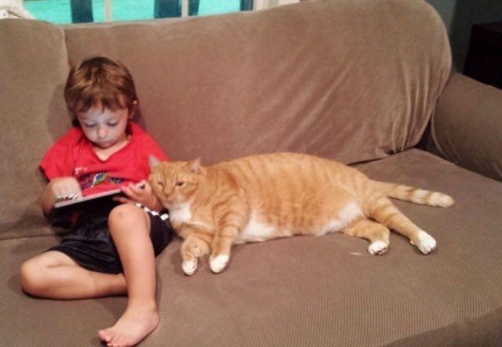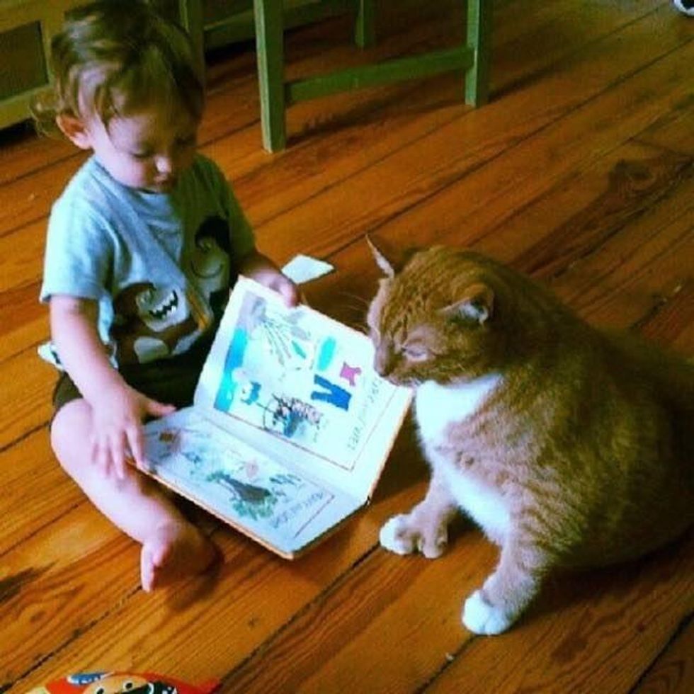 Abel loves to read stories to Larry, and the ginger boy is a wonderful listener.