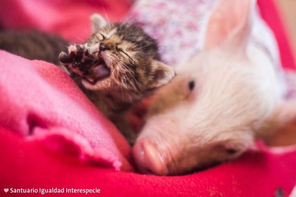 "Since her arrival, Laura has been treated with love and care that a baby deserves, and has been a deep friendship with Marina kitten, showing by example, that when it comes to relations of friendship and respect, no matter the species to which it belongs," The sanctuary wrote via YouTube.