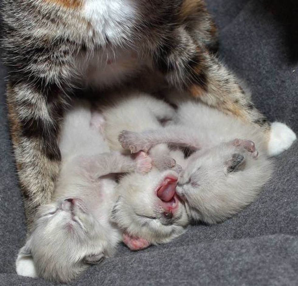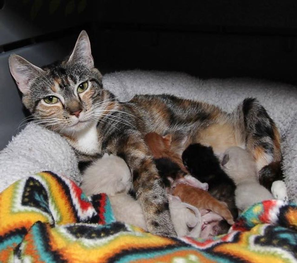 Jellybean the calico was heavily pregnant outside on a street when she was picked up by rescuers from Multnomah County Animal Services in Oregon. She was taken into the shelter just in time to deliver her babies.