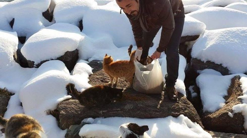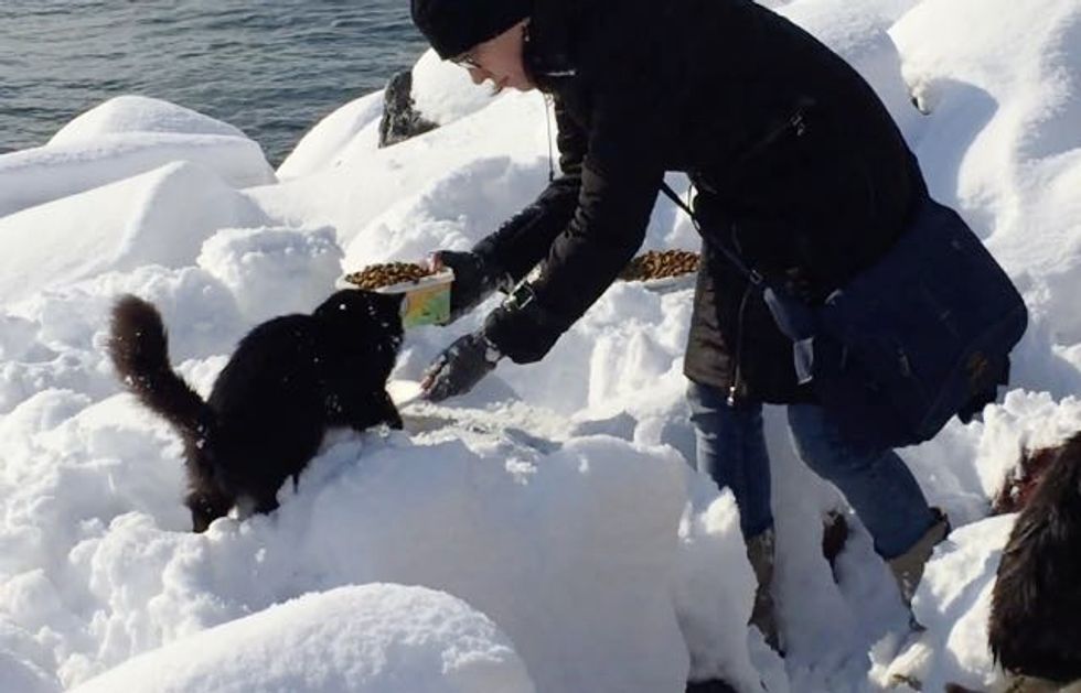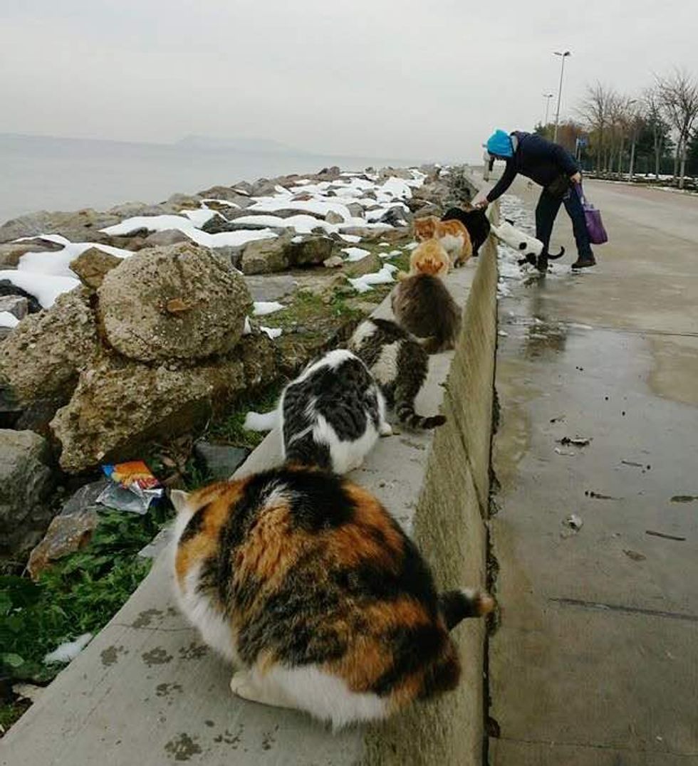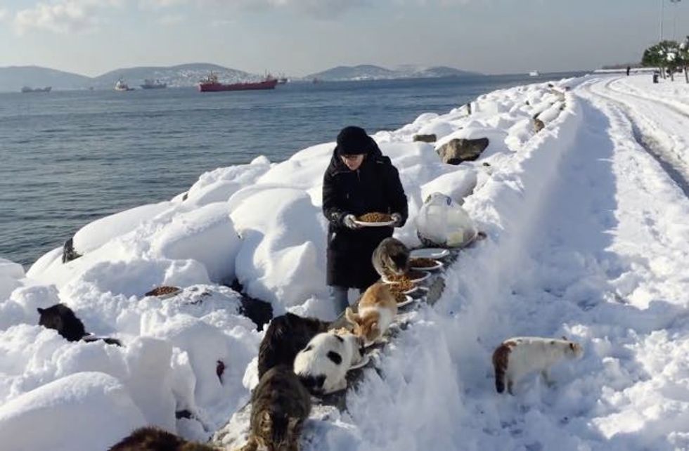 Vera an animal lover came to the coast of Kartal, in Istanbul with bags of cat food on a heavy snowy day. She and other volunteers make sure these kitties have enough food every day no matter what the weather is.