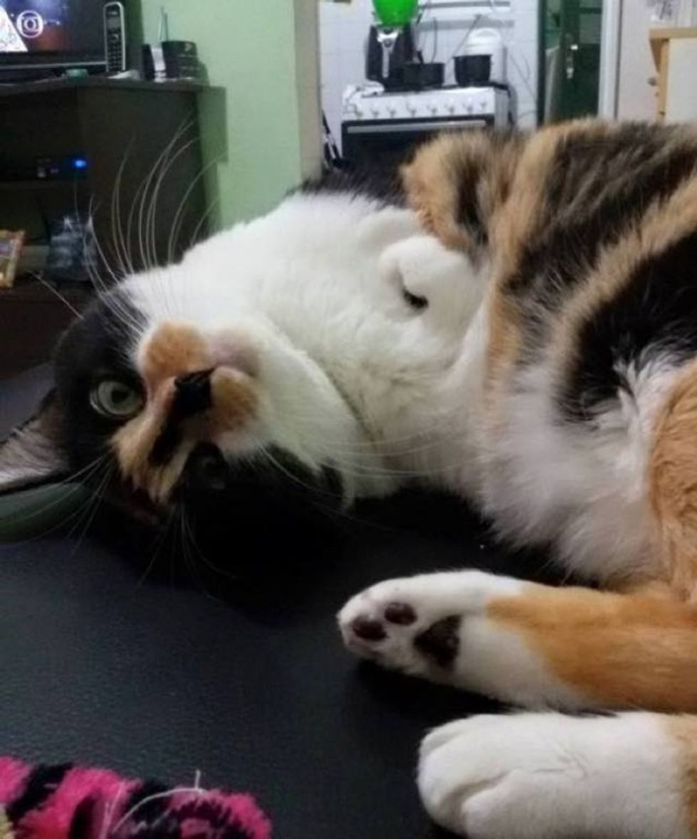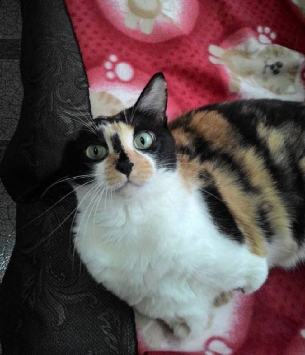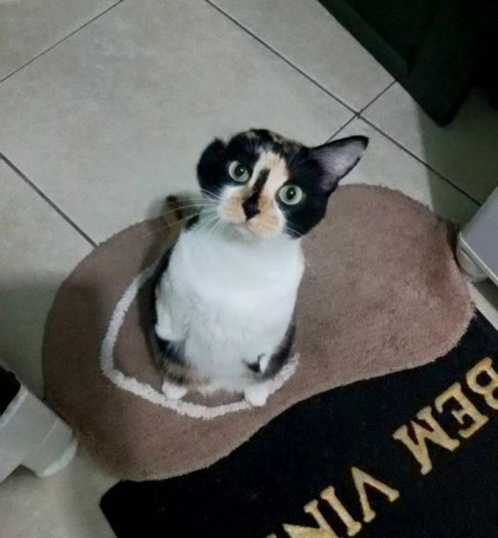 Her name is Esperança, which means 'hope'. This beautiful calico girl was born without front paws and an ear, but nothing can stop her.