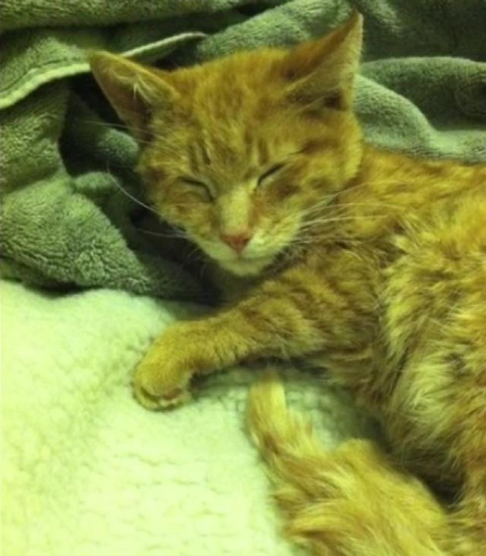 A man found a ginger kitten freezing in the cold. He took her into his house and brought her back to life!