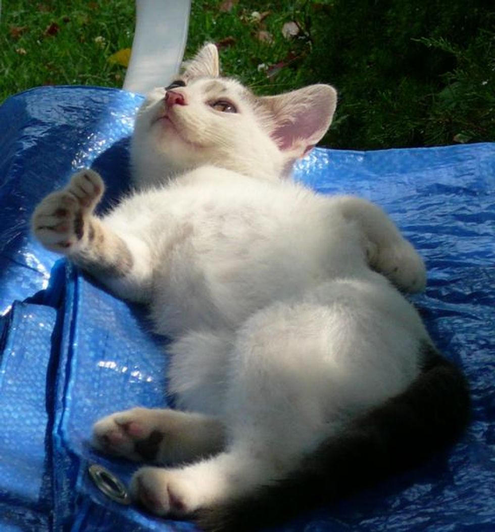 "Their Mother hangs around the community. When Hubbie noticed she was getting bigger he started coaxing her to our garden with dry food. There are many stray dogs roaming around and he did not want to see her get hurt. I tried trapping her. No way would she fall for that. So several weeks later she came wandering thru the garden skinny. We did not see the kittens for several weeks. My garden became their play ground and slowly they got used to humans," said Eileen.