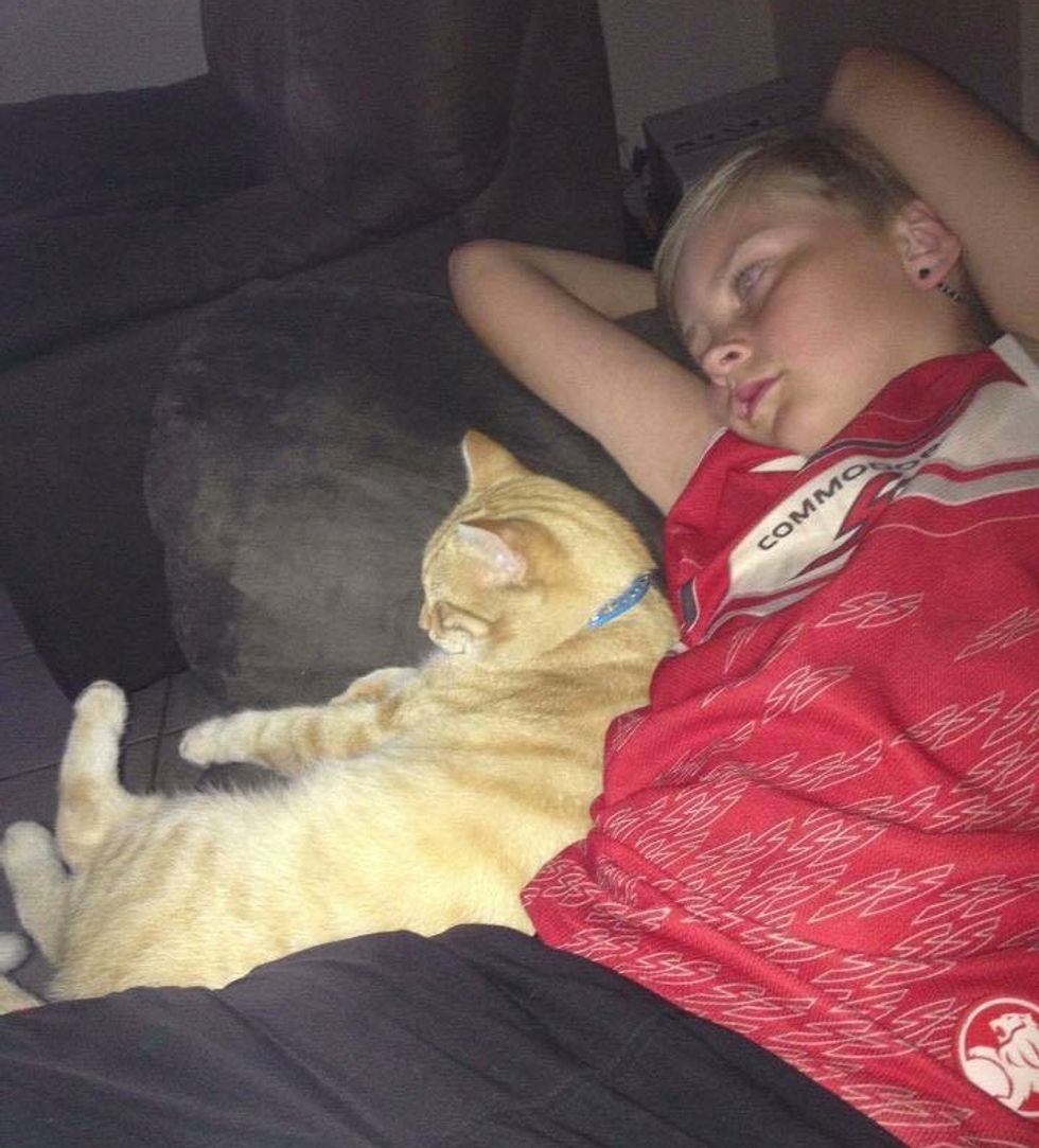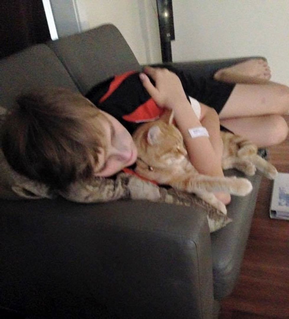A boy saved a stray cat from the street and gave him a home. When he was diagnosed with cancer, the cat never left his side.