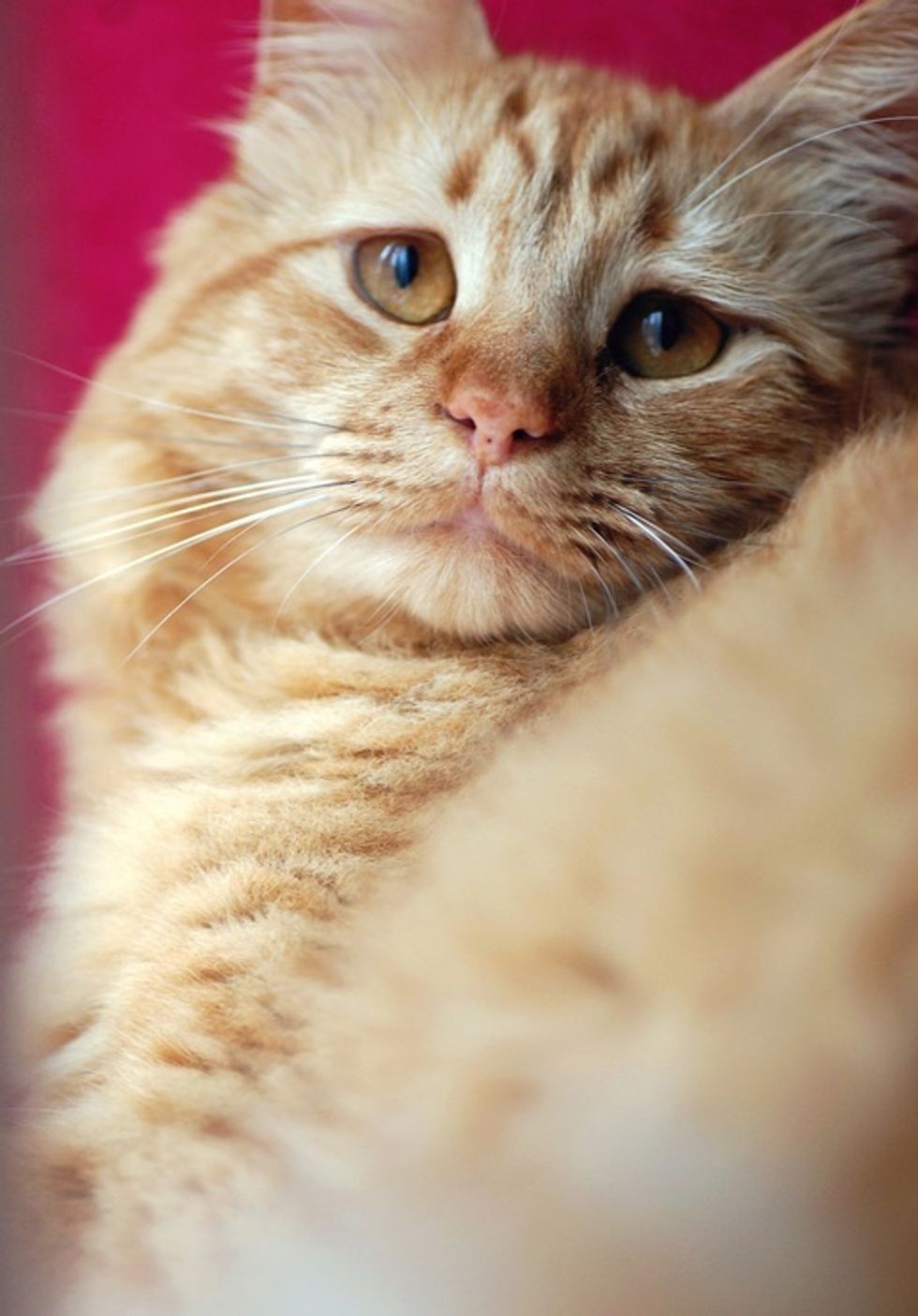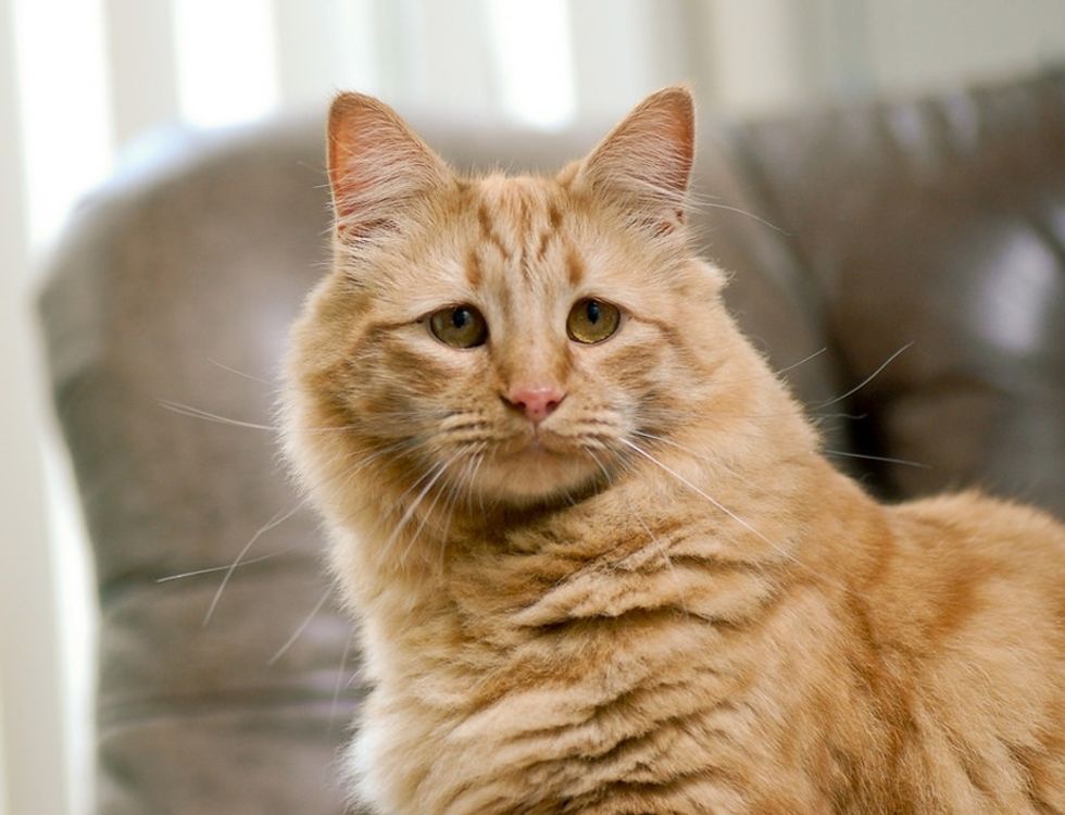 A ginger kitty was born with the always-concerned-look. He was a bit of a scaredy cat when his human found him from a shelter. Now 8 years later....