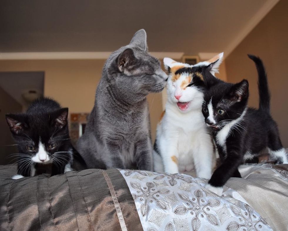 "She plays with the kittens and helps me socialize them. She's really just a big kitten at heart."
