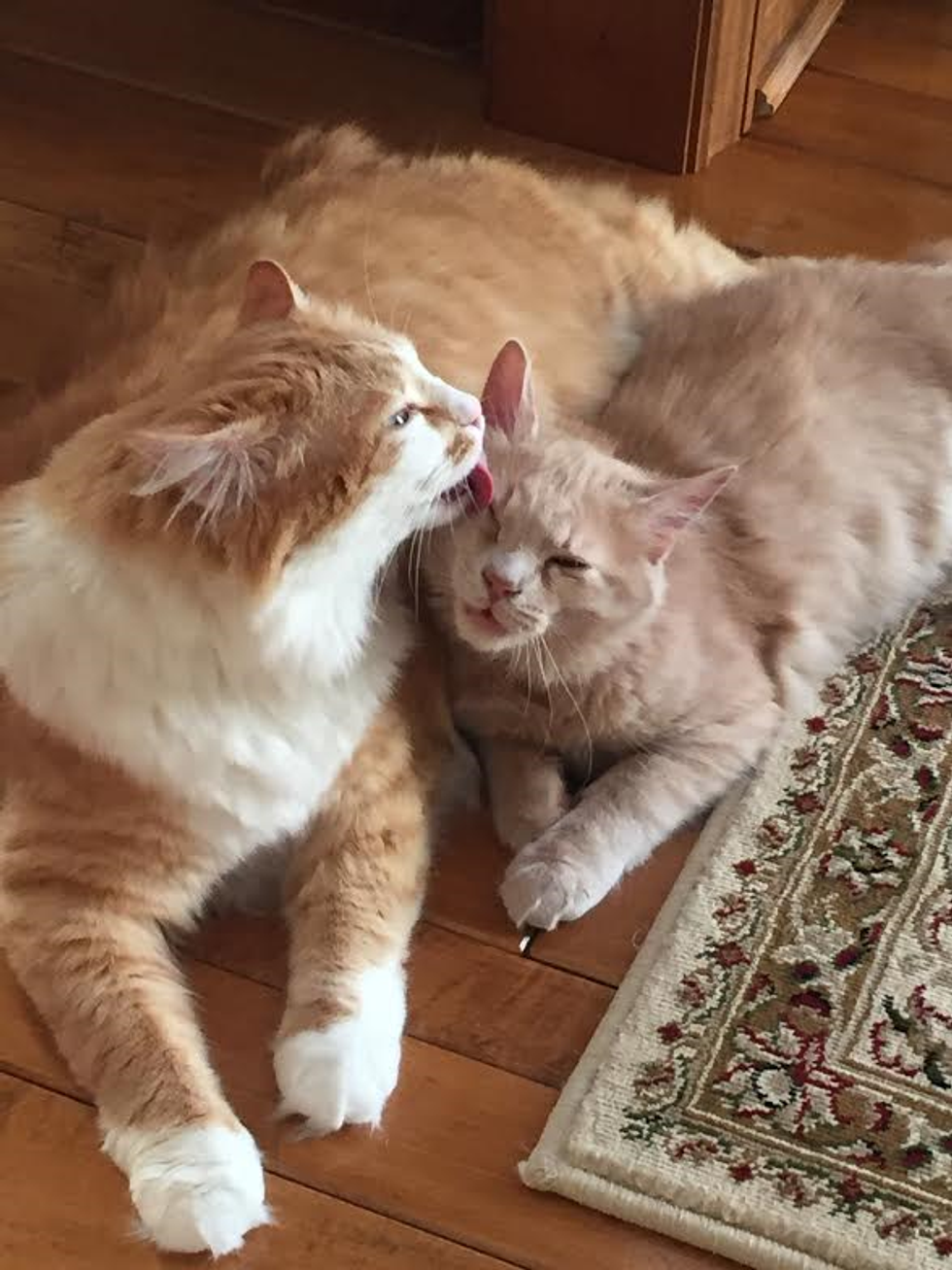 He required breathing treatments, enemas and had to have his eyes soaked, cleansed and medicated around the clock. The ginger boy frequented the vet clinic and was a champ throughout the ordeal.