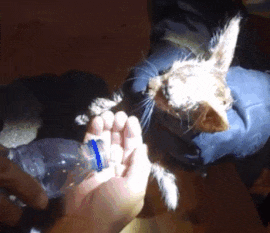 The little kitten was exhausted but still tried to escape. A firefighter managed to grab him and got him some water.