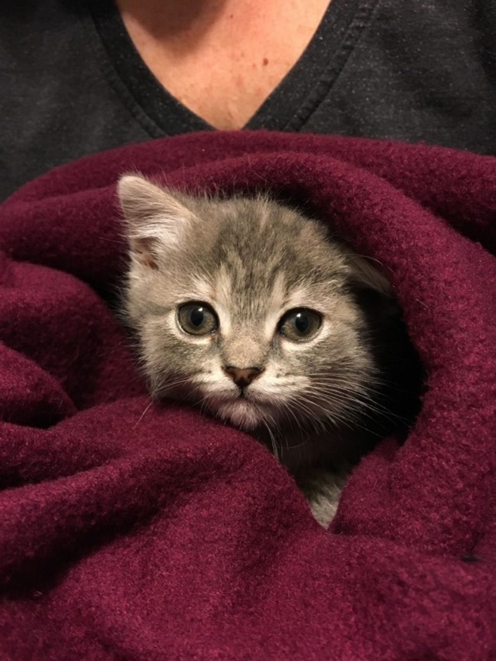 A little kitten was living a feral life, wandering alone until she was spotted on a busy road by a good Samaritan. She picked her up and knew exactly what the kitten needed...