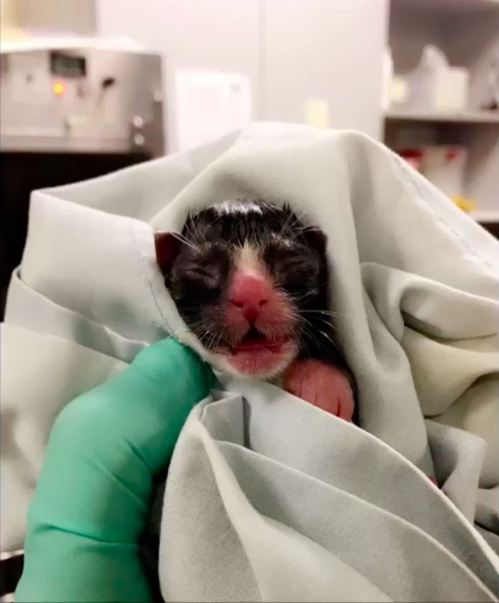 If the plastic container wasn't removed in time, Skippy's kittens wouldn't have been able to make it.