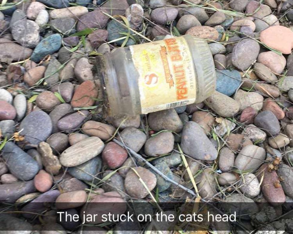 Carra Mathewson, Riverside County Animal Services Officer responded to a concerned resident's call Monday after they found a cat in their yard with a plastic (peanut butter) jar stuck on her head.