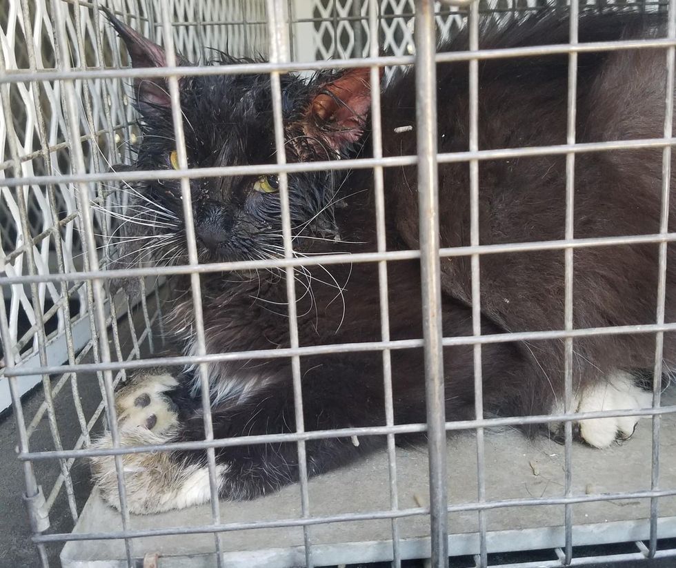 The cat was badly infested with maggots and was immediately rushed to the San Jacinto Valley Animal Campus for emergency treatment.