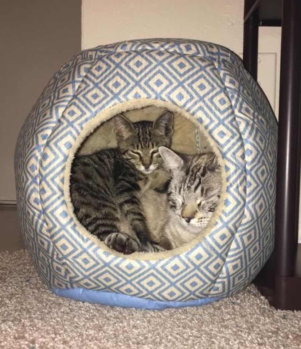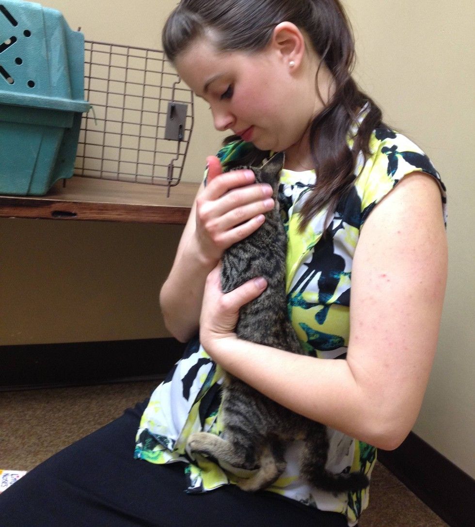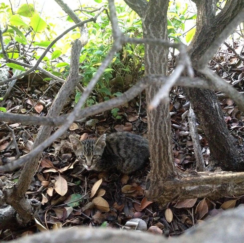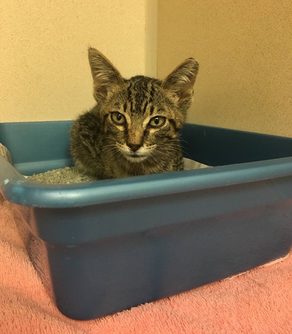 Two weeks ago a tiny, scared, tabby kitten came to the door of an office, lost and alone. "He would meow a lot, but he was very scared and wouldn't let anybody near him," reddit user coinpile said.