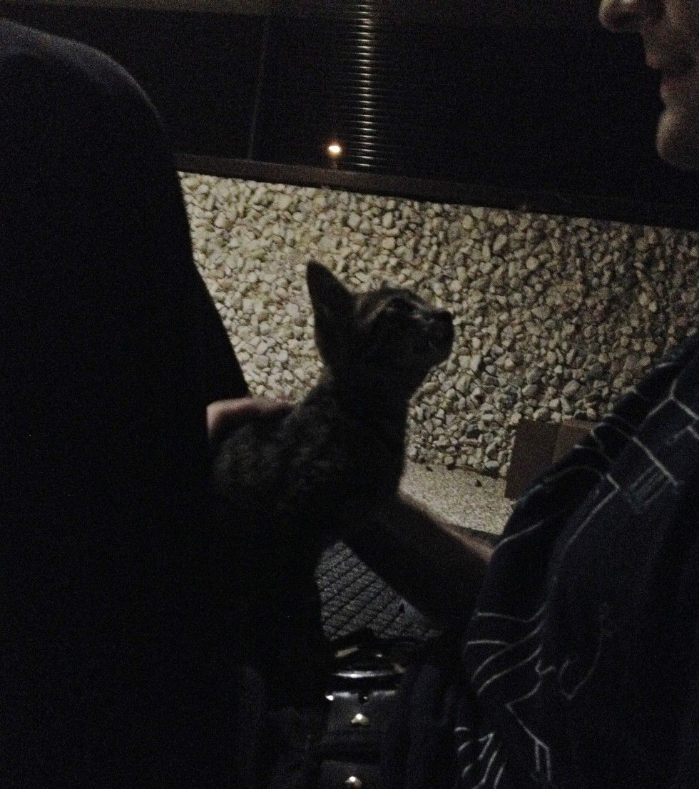 This is the moment kitten started to warm up to his human friend.