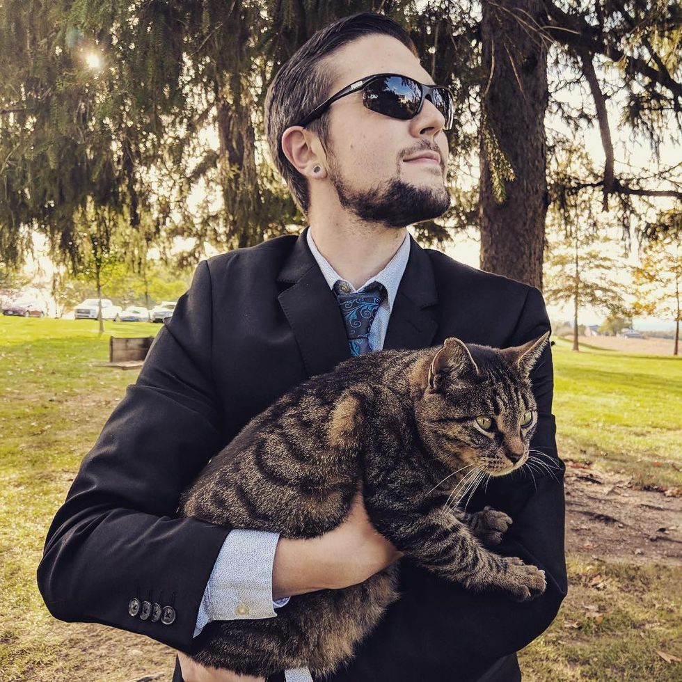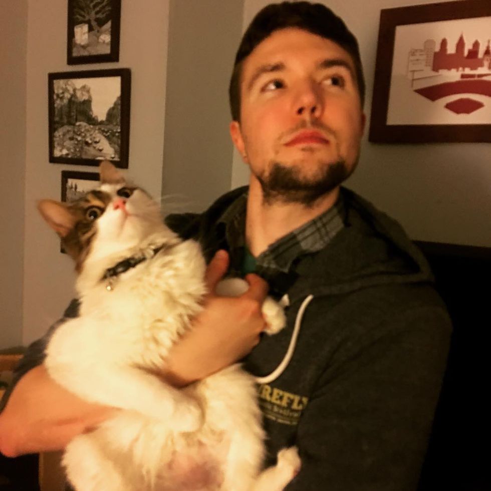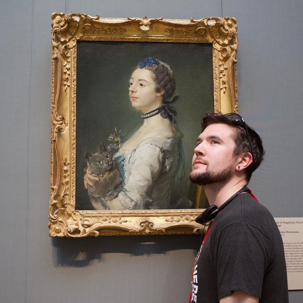 Nick came across this purrfect portrait that was quite reminiscent to his own. Naturally, he had to pose with it.